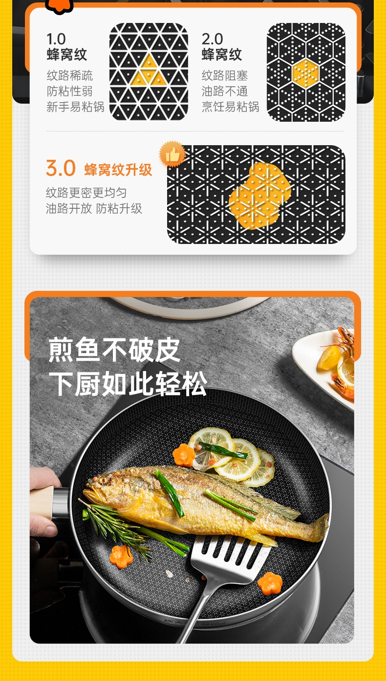 316L不锈钢;耐磨无惧铁铲;不粘蜂窝纹