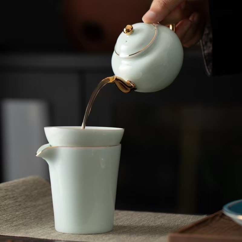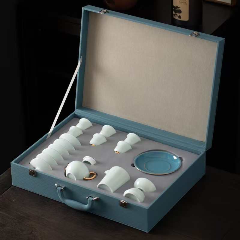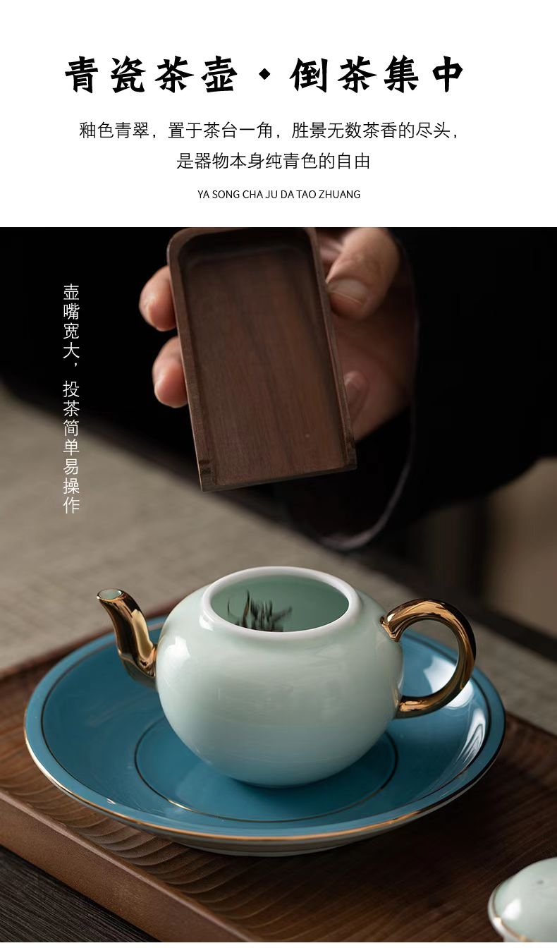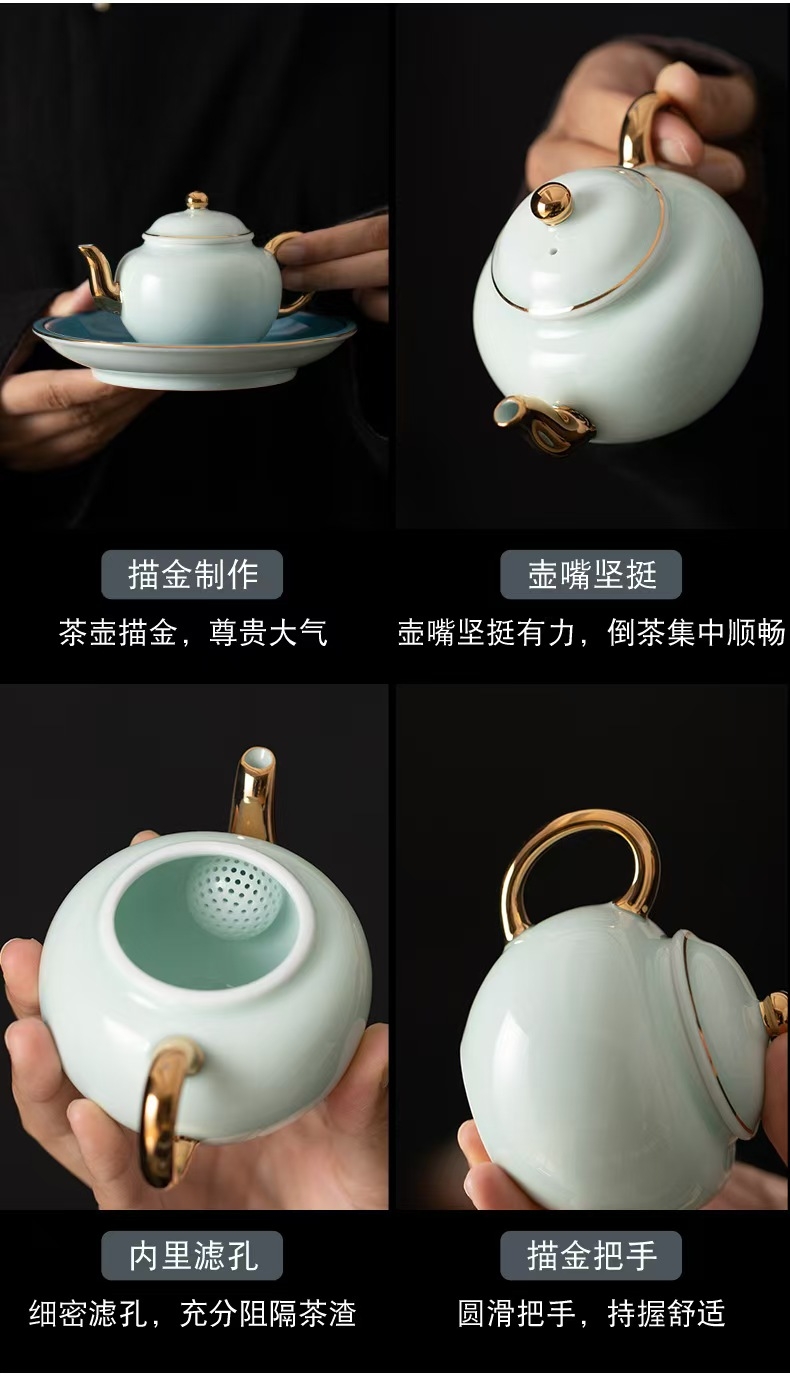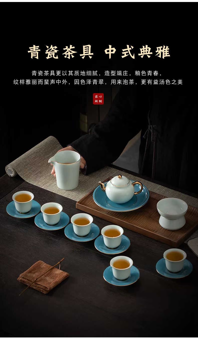 高端17头青山玉描金茶具套装