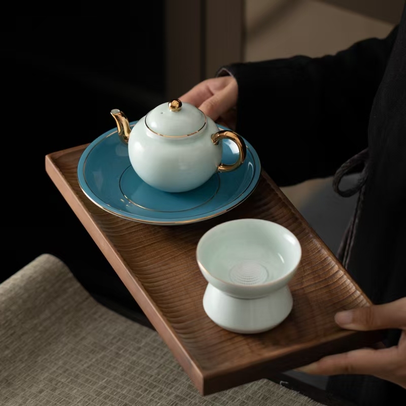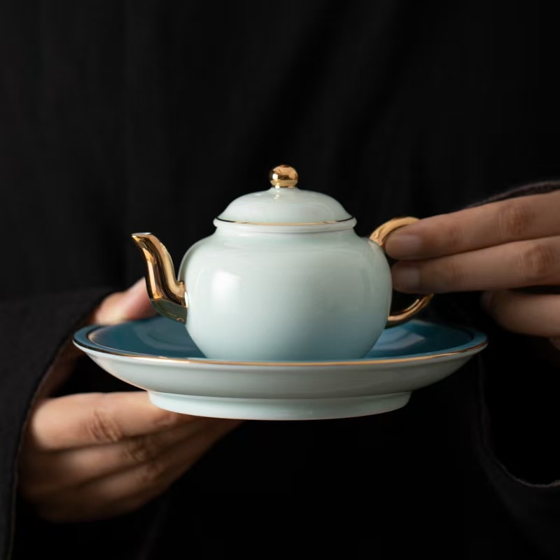青山玉是高端青瓷新品,以瓷质细腻,线条明快流畅,;色泽纯洁而斑斓著称。青如玉,明如镜,声如磬;描24K真金奢华装饰,被称为瓷器之花。