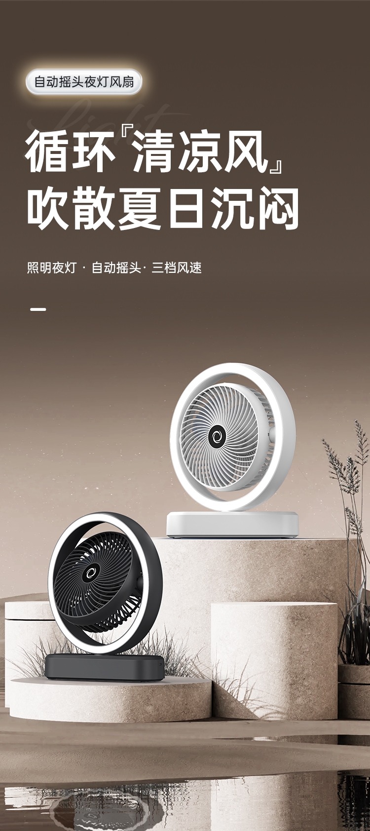 暗影 桌面补光自动摇头风扇A8803
