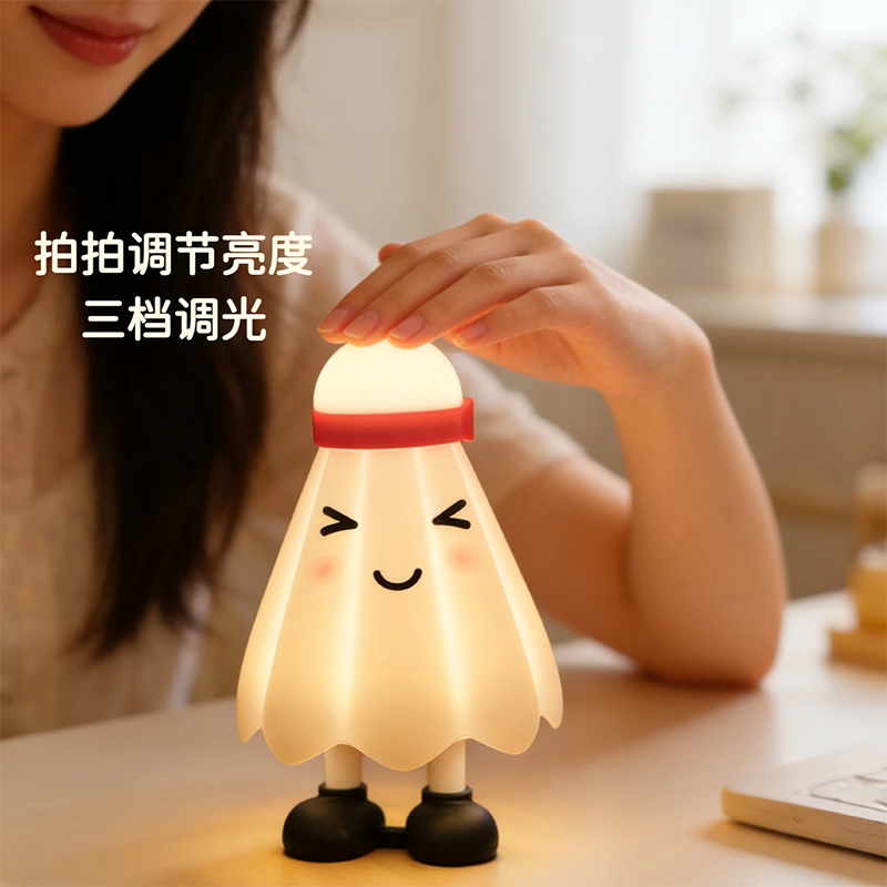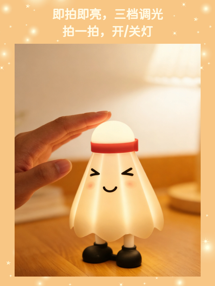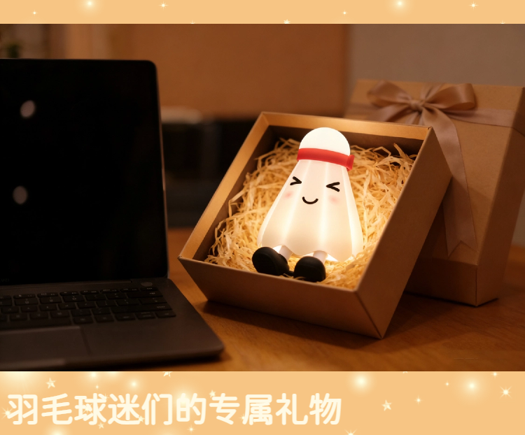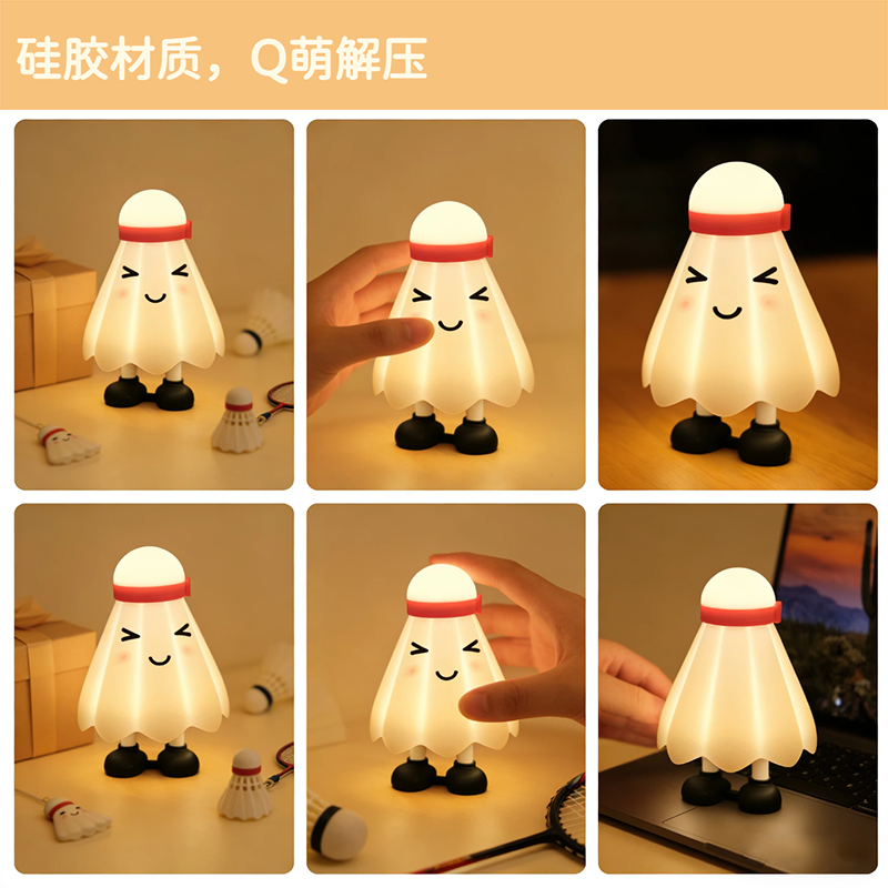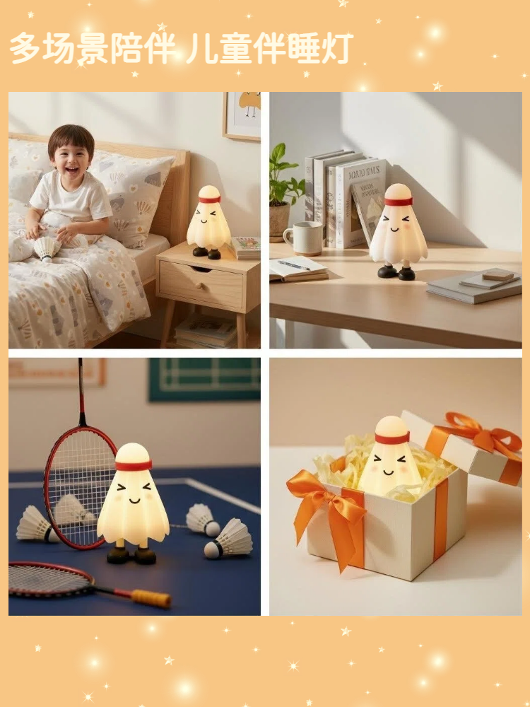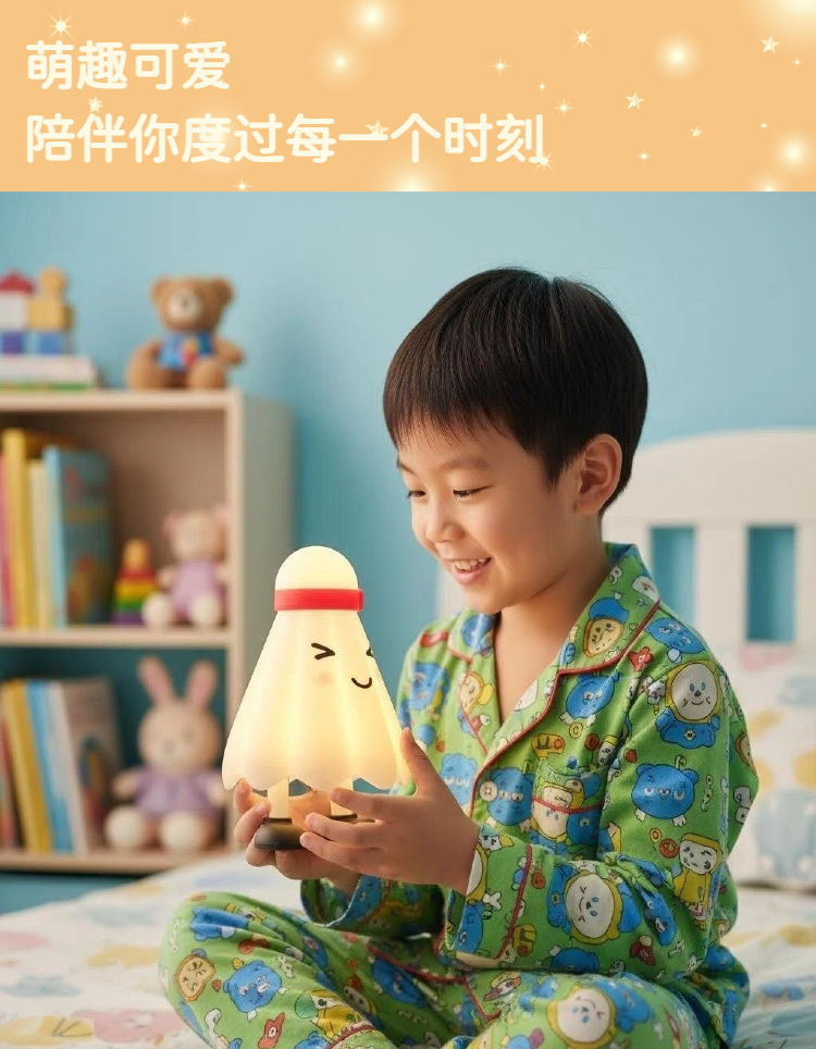 软萌羽毛球造型,治愈感拉满;柔光暖光,不刺眼更护眠;球拍调光,趣味互动玩法