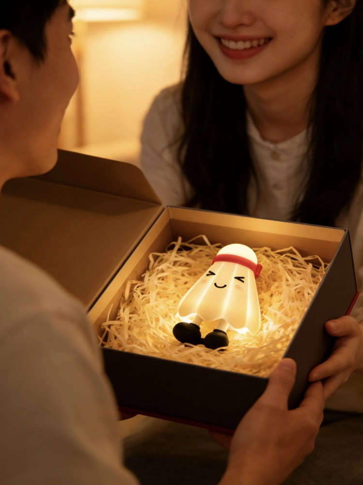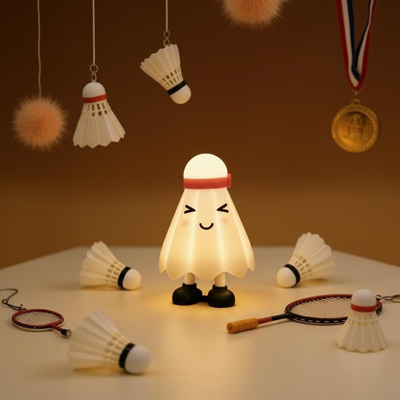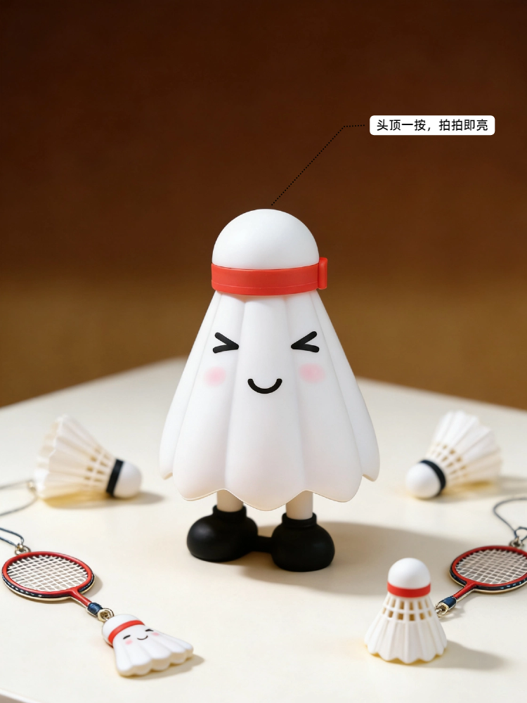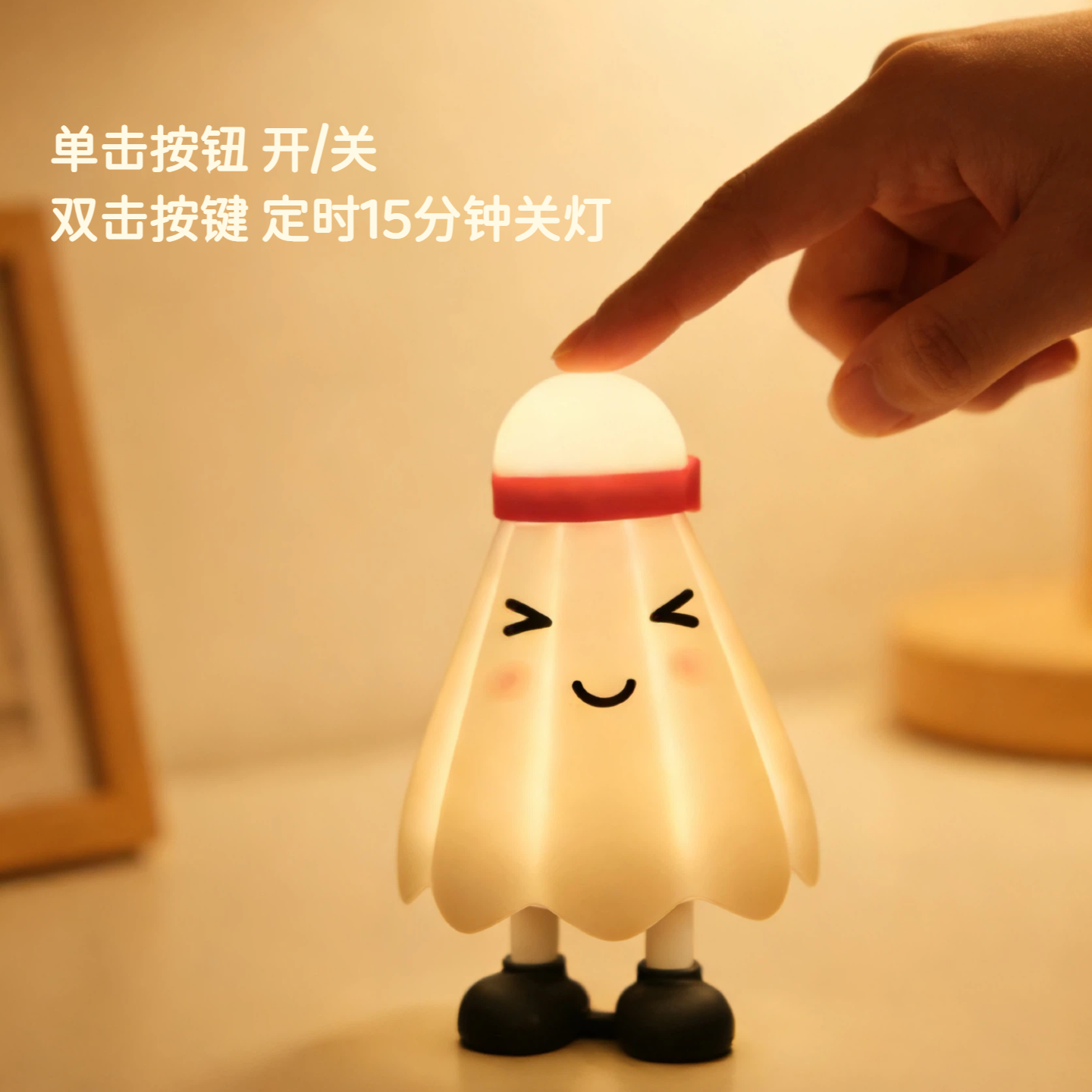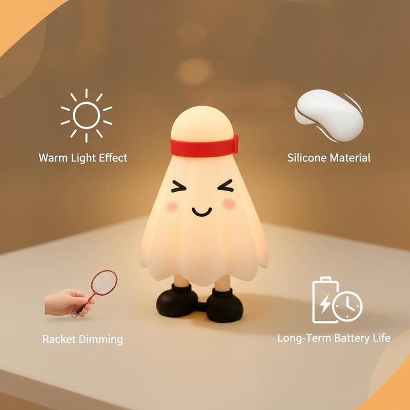 软萌羽毛球造型,治愈感拉满;柔光暖光,不刺眼更护眠;球拍调光,趣味互动玩法