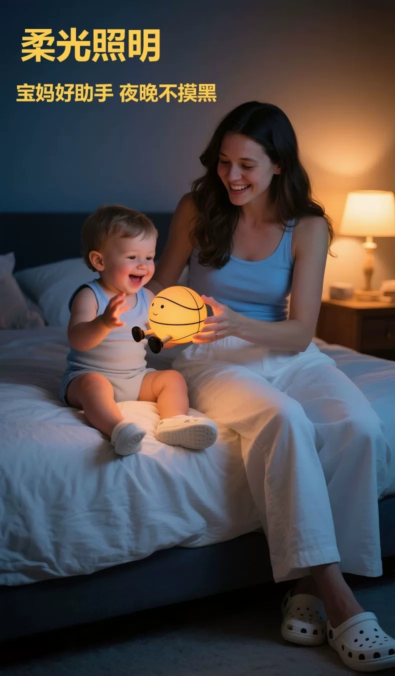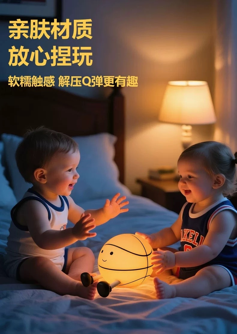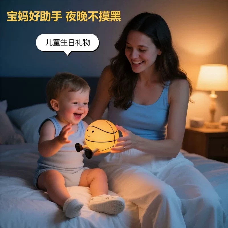 超萌篮球 IP 造型,运动爱好者专属;温柔暖光,护眼不刺眼;三档亮度可调,场景随心切换
