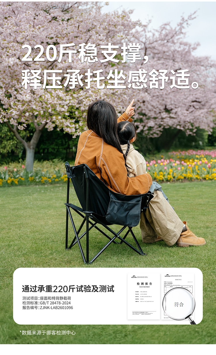 轻松小聚 全套装备一次带齐。;300斤强承重,不惧重压稳如磐石;220斤稳支撑释压承托坐感舒适。