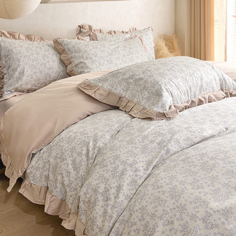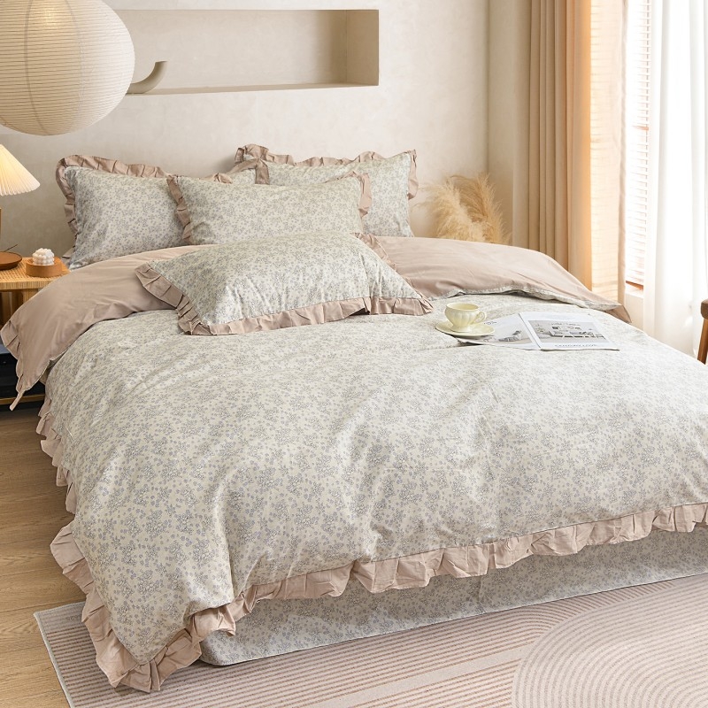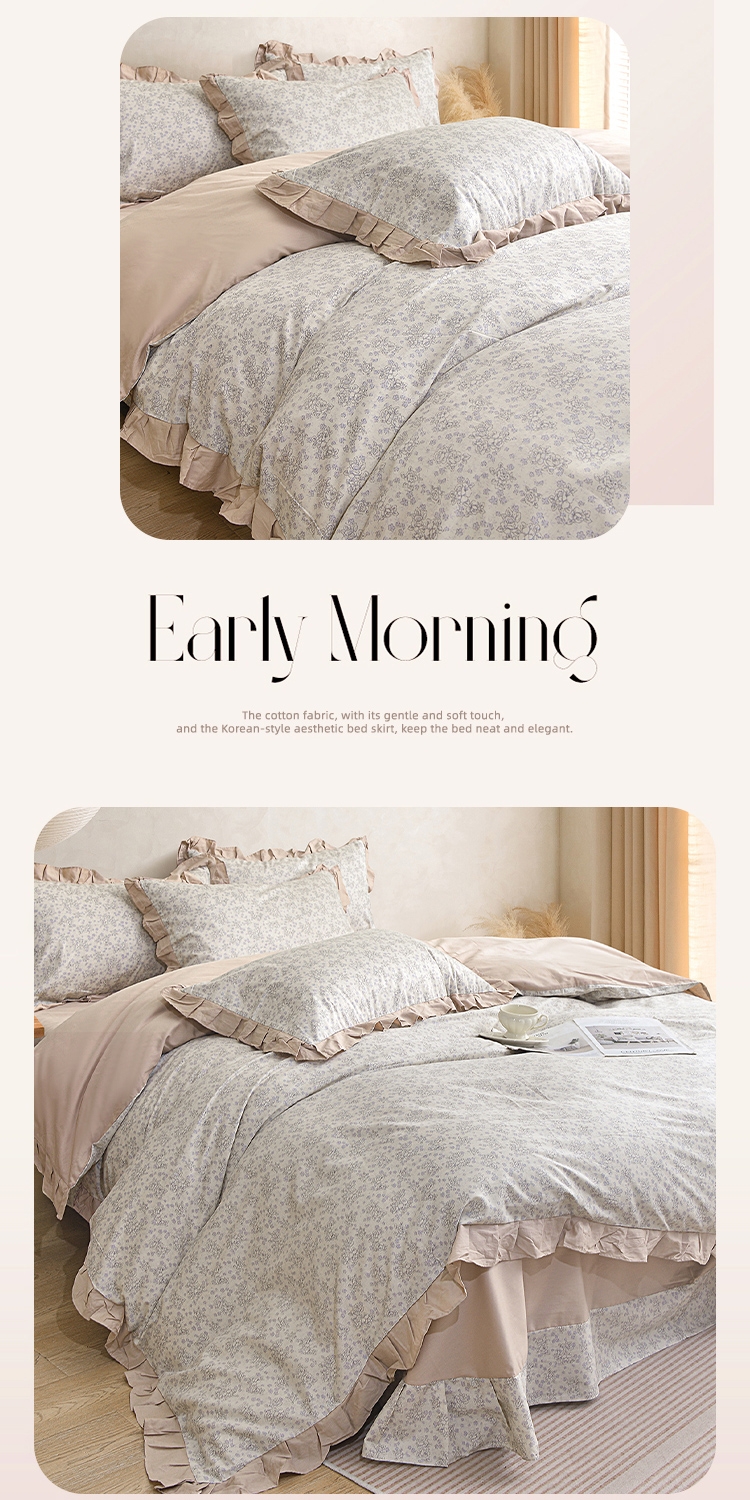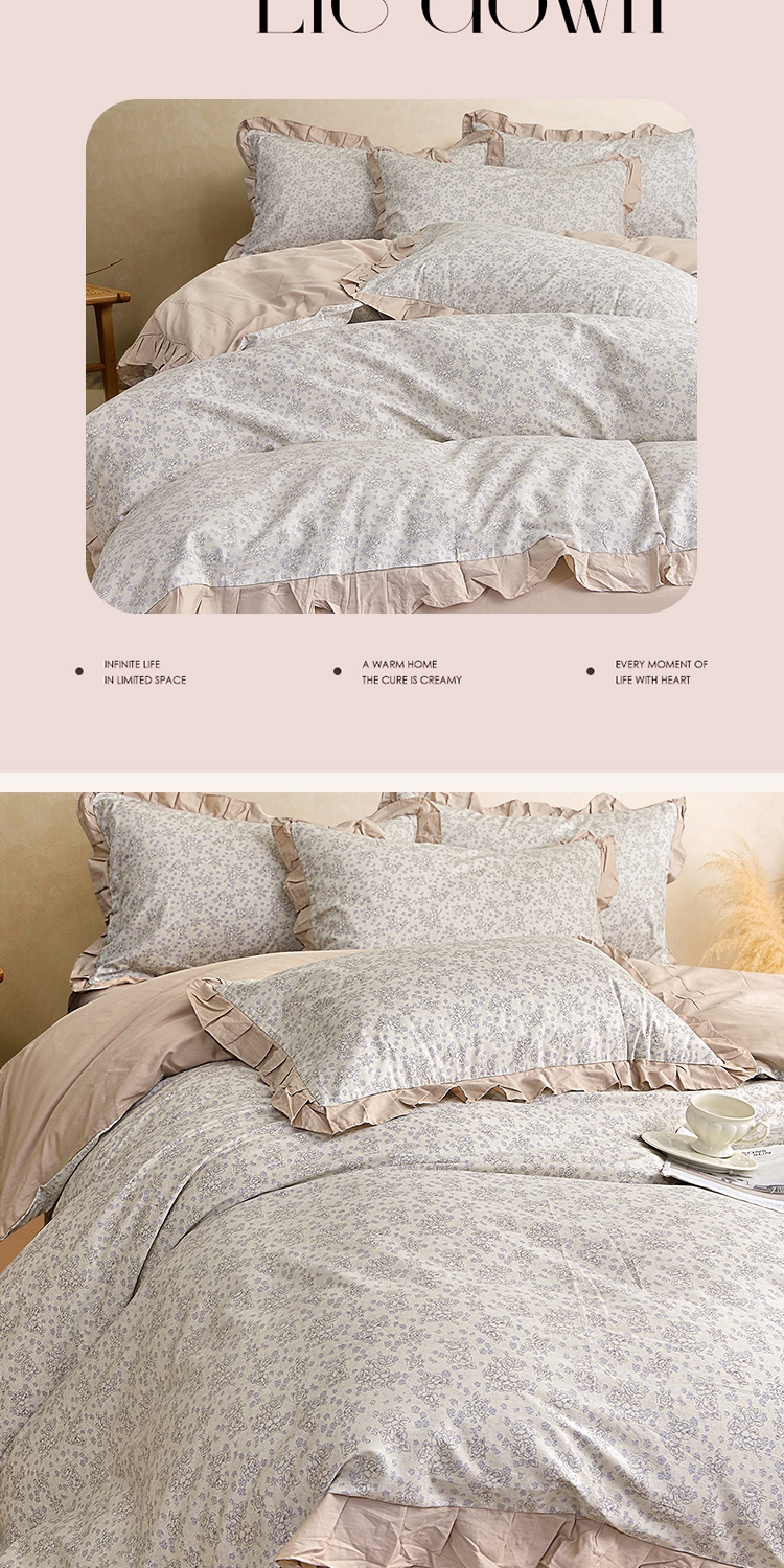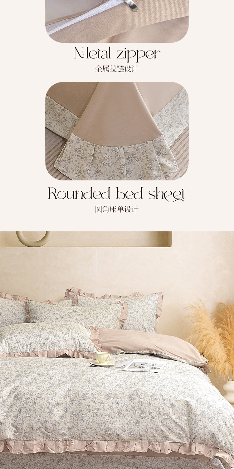 喷气织造纯棉,软滑亲肤,久用不起球不变形;法式温柔木耳边,氛围感拉满,颜值质感双在线。;环保无异味,活性印染不褪色。