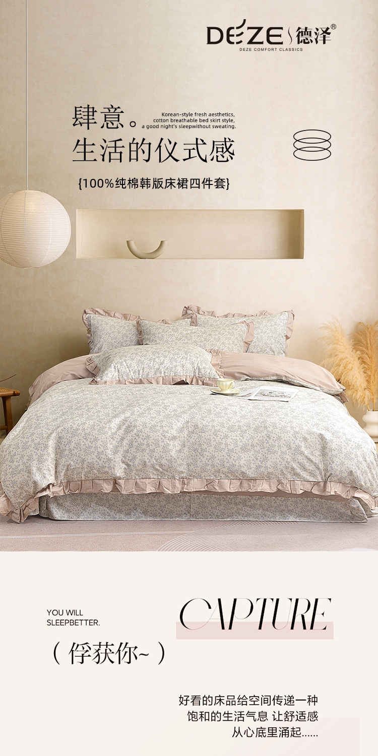 德泽 纯棉韩版床裙四件套赫本DZ-J26-66
