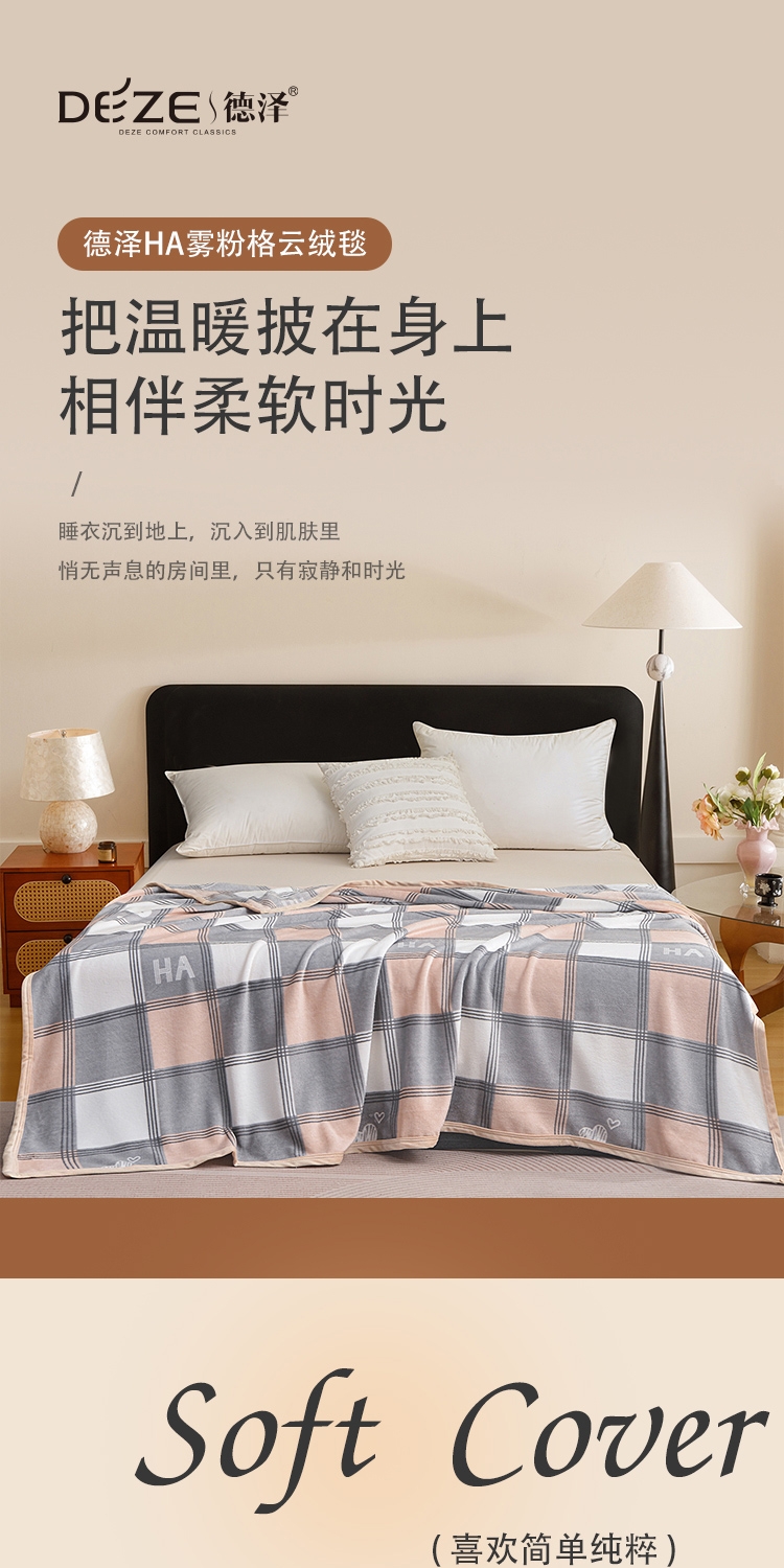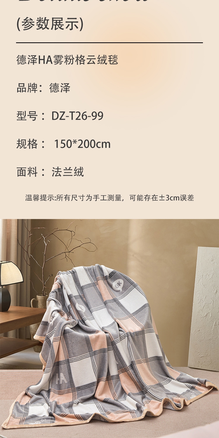 德泽 HA雾粉格云绒毯DZ-T26-99