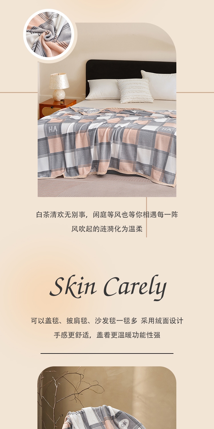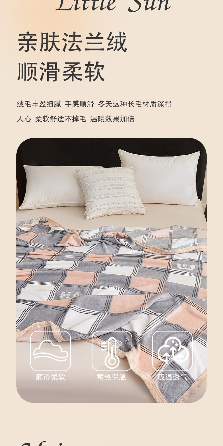 面料亲肤无刺激,触感像云朵般柔软,软fufu的质感; 加密绒毛,经过锁绒工艺处理,机洗手洗不易掉毛;绒面材质,能快速锁住身体热量,盖上暖和舒适