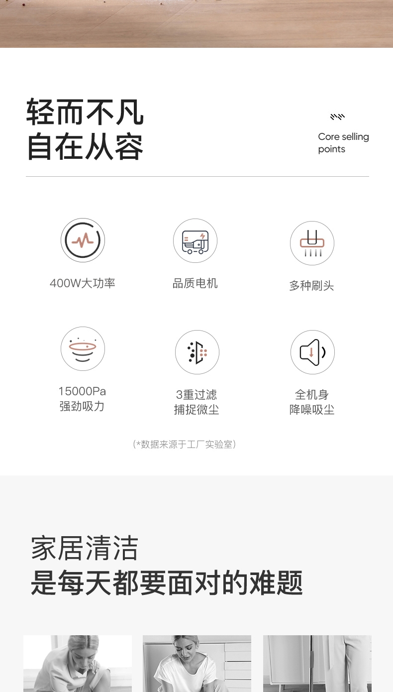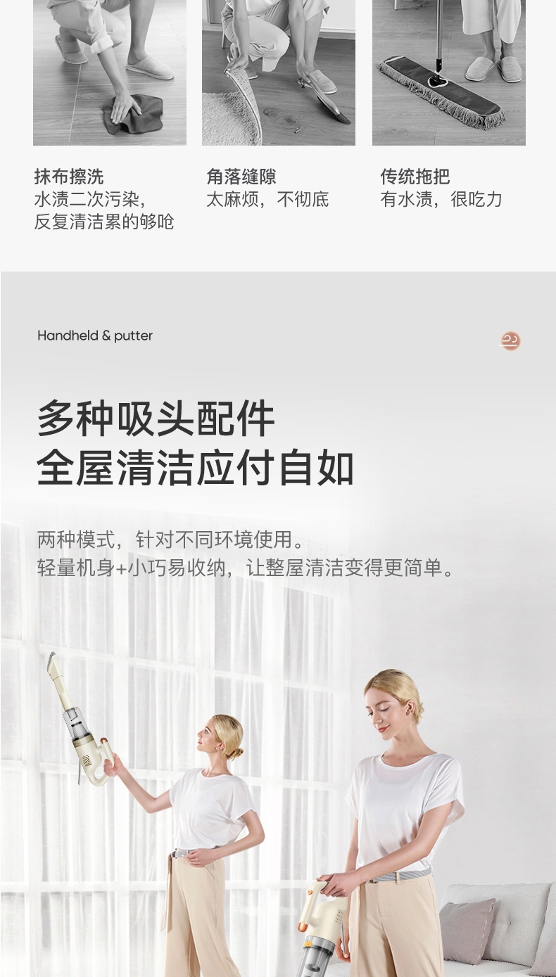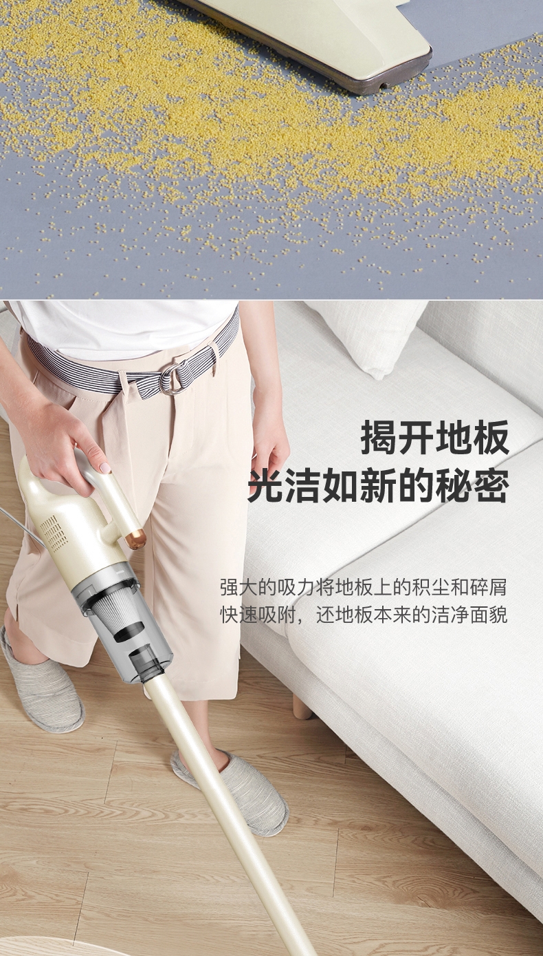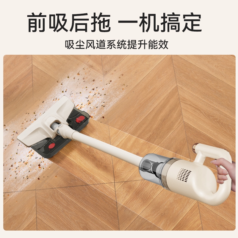 大吸力,搭载高效电机,家庭常见垃圾一扫而过;吸尘拖地同步进行,提升灰尘清洁效率;水箱一键开关控水出水,不溢水
