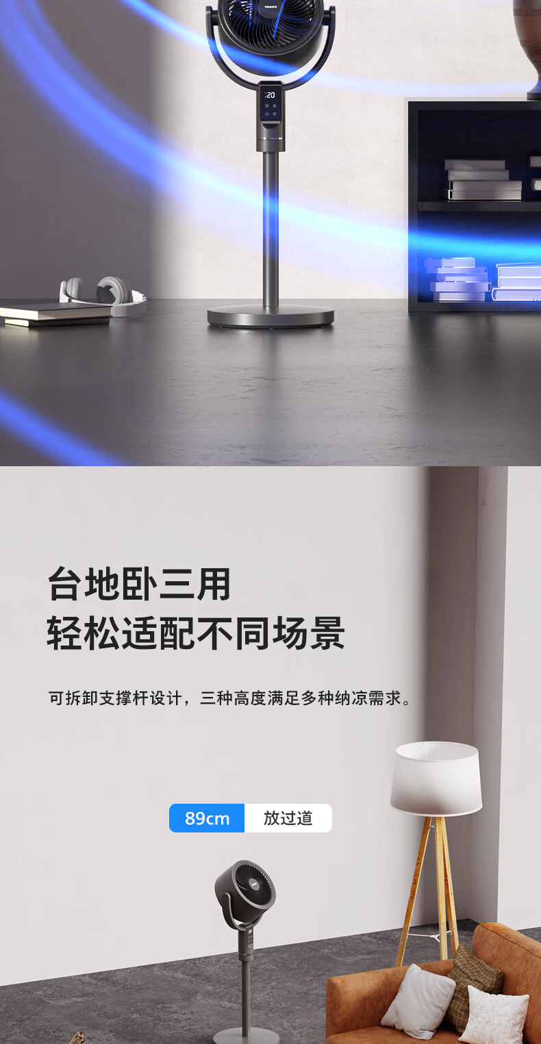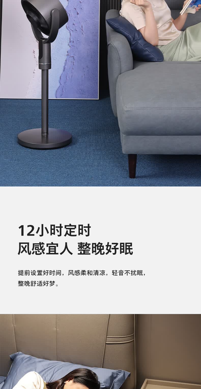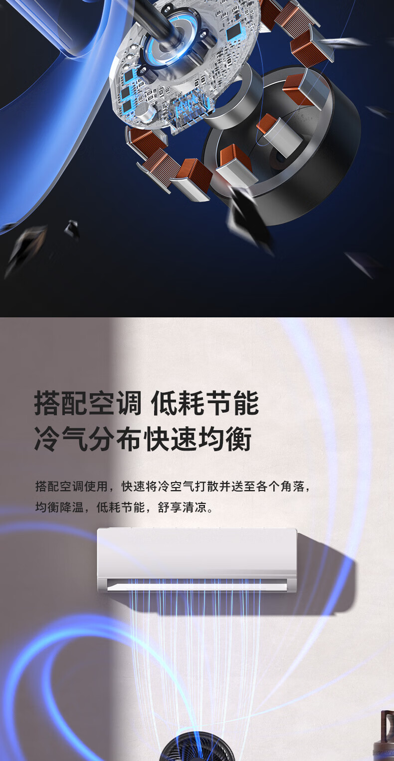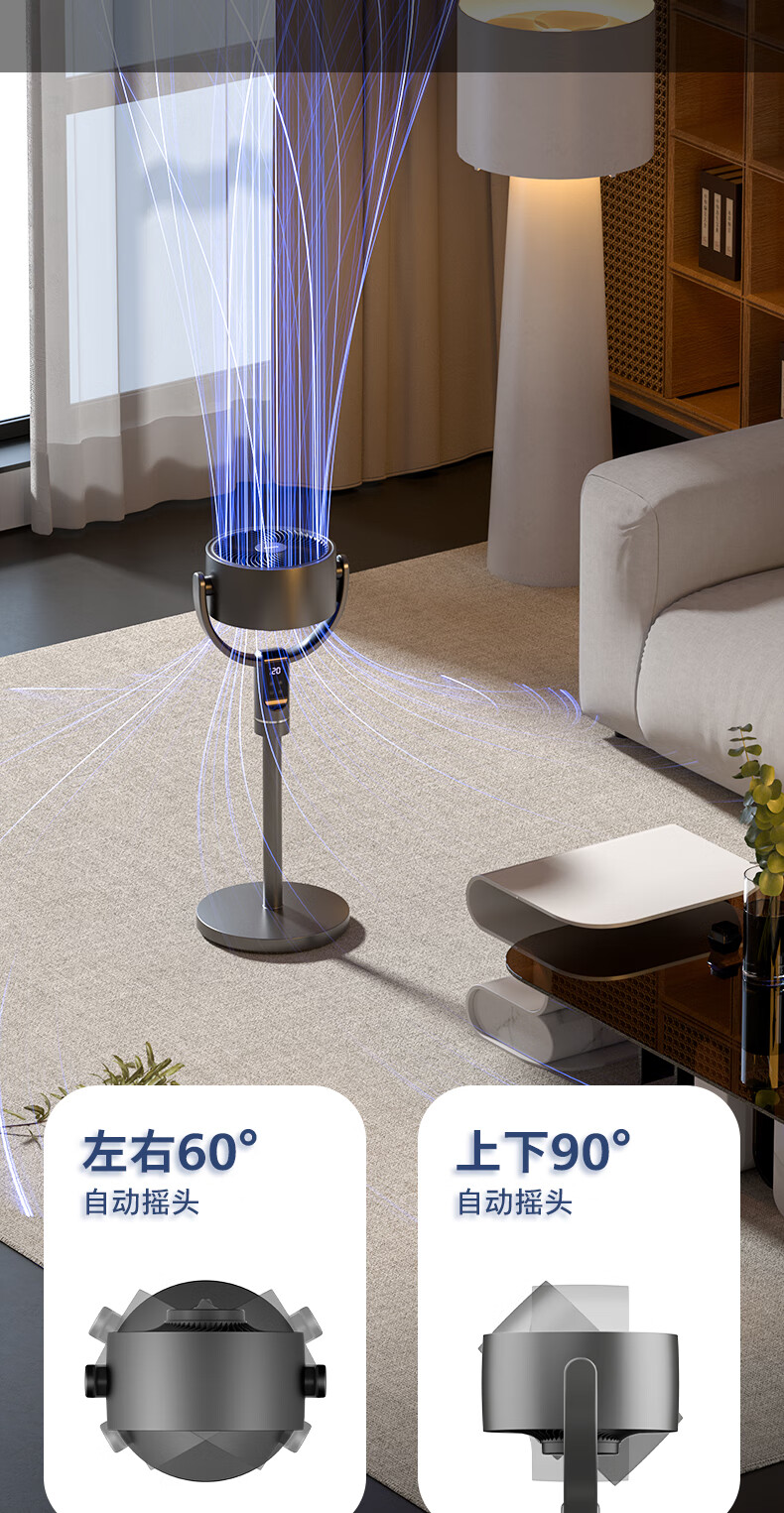 直流变频 轻音低噪音;自动摇头风大智能遥控;空气循环 台地两用