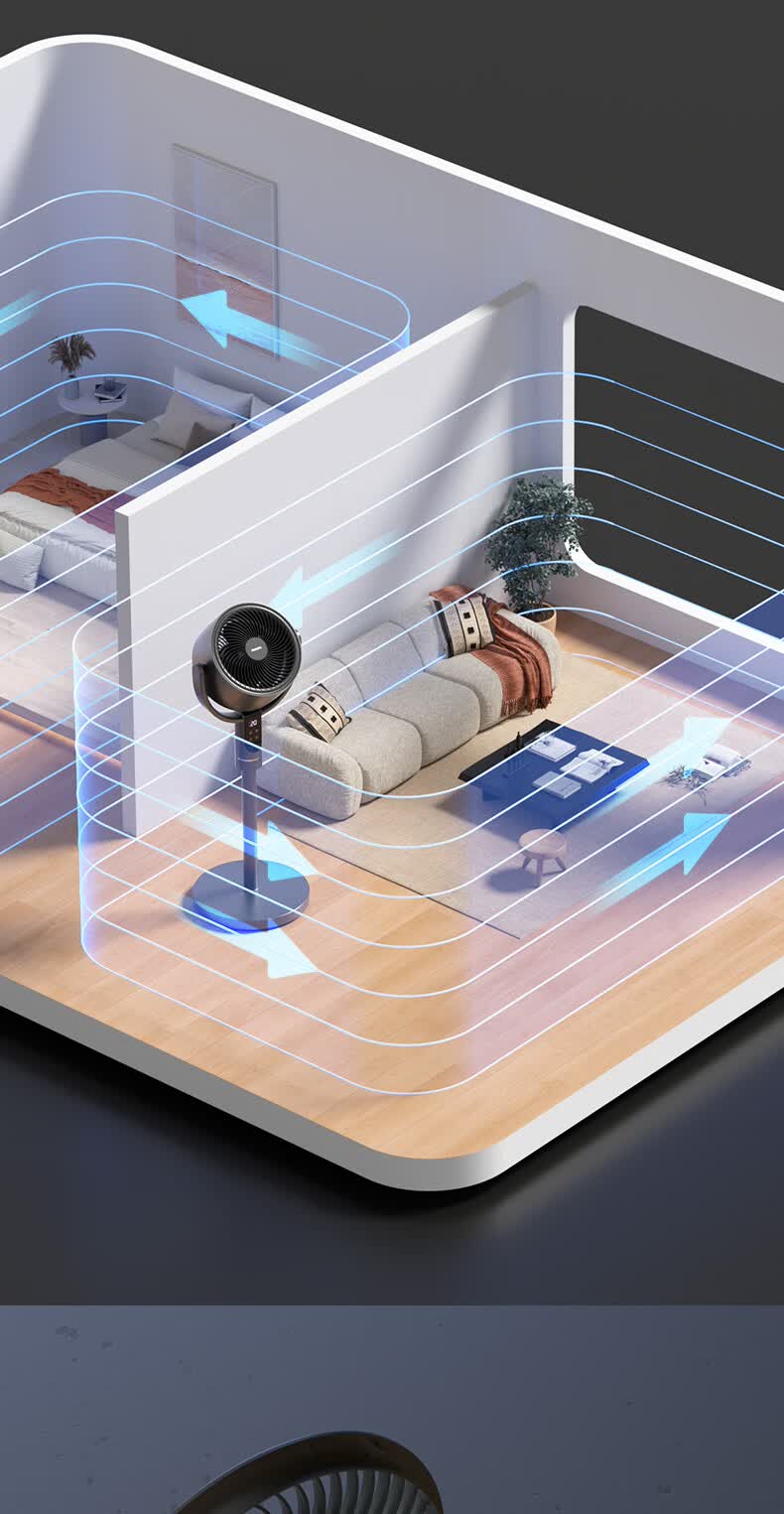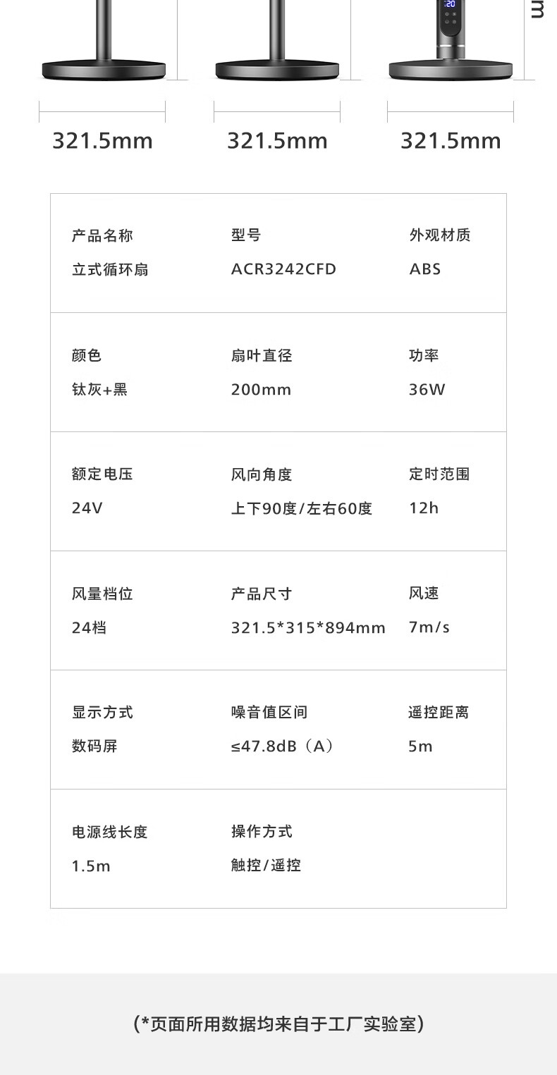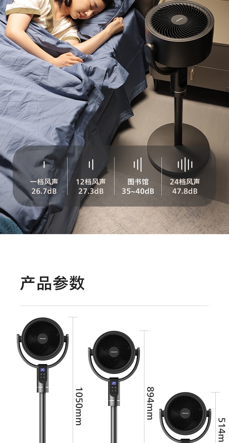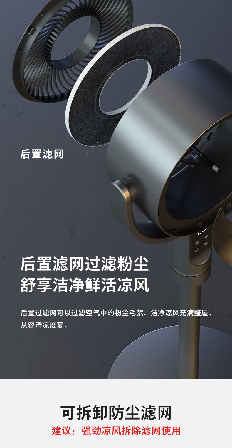 直流变频 轻音低噪音;自动摇头风大智能遥控;空气循环 台地两用