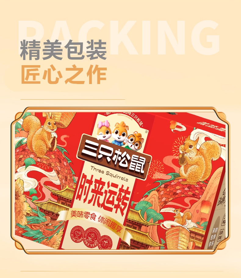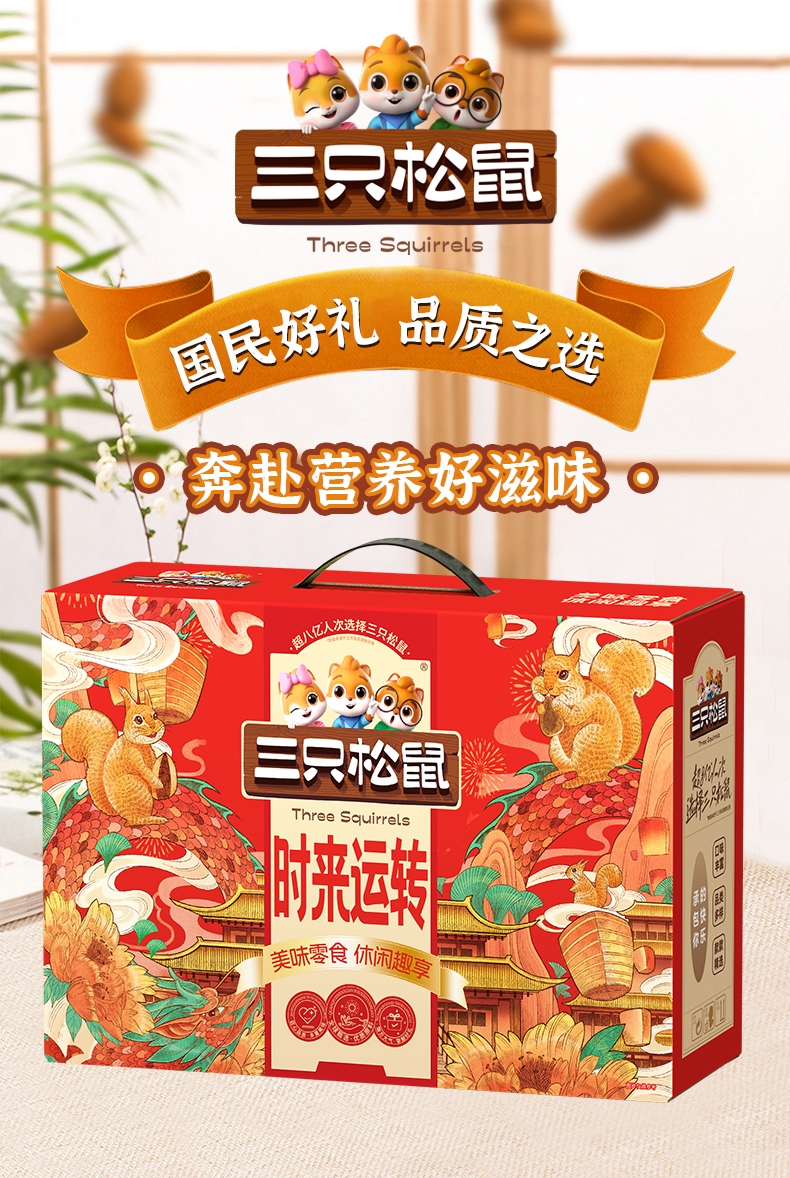 超八亿人次选择三只松鼠 全新包装;企业福利,走亲访友,首选三只松鼠 团购更优惠;一件发货、集采直送到家,常规备货