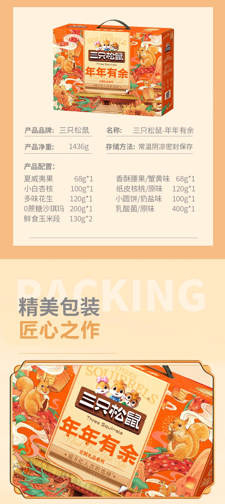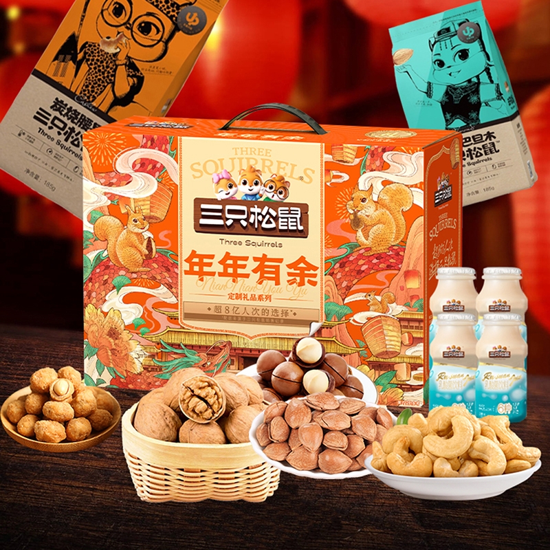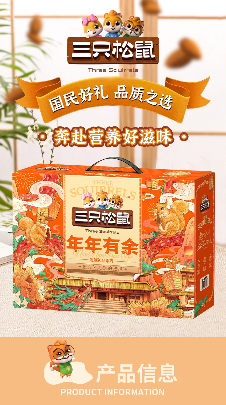 超八亿人次选择三只松鼠 全新包装,全新套餐;企业福利,走亲访友,首选三只松鼠 团购更优惠;一件发货、集采直送到家,常规备货