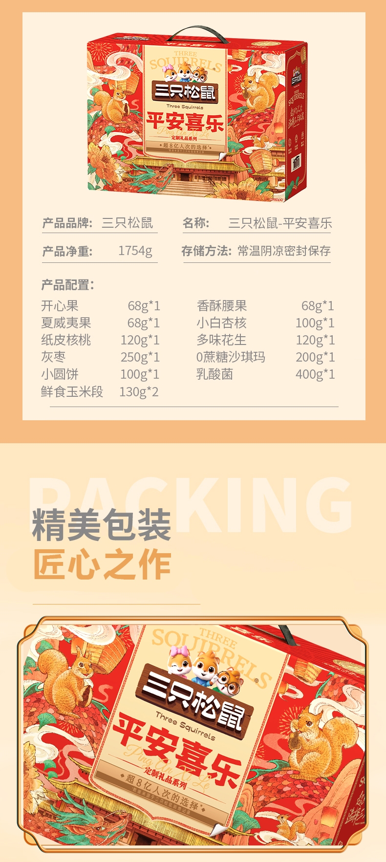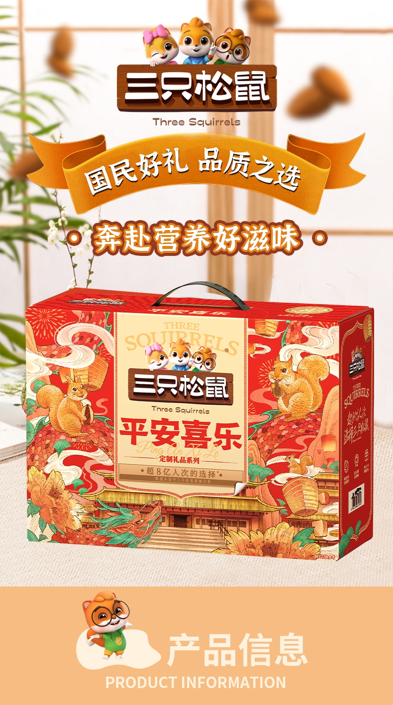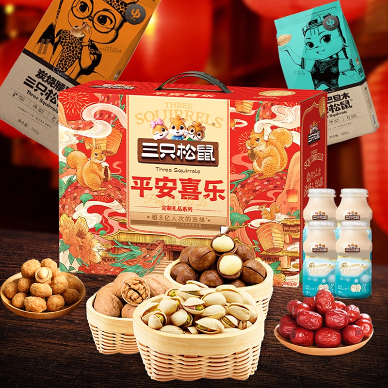 超八亿人次选择三只松鼠 全新包装,全新套餐;企业福利,走亲访友,首选三只松鼠 团购更优惠;一件发货、集采直送到家,常规备货