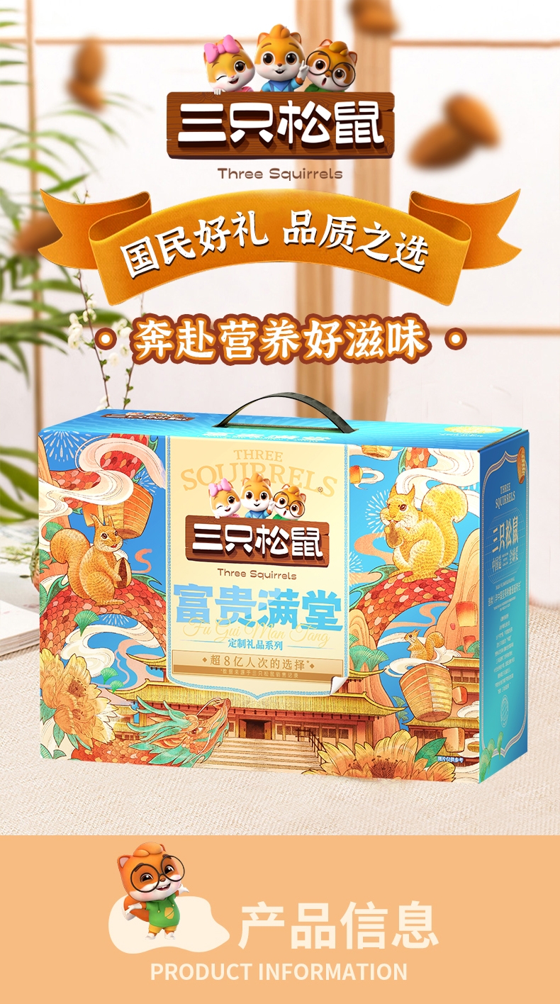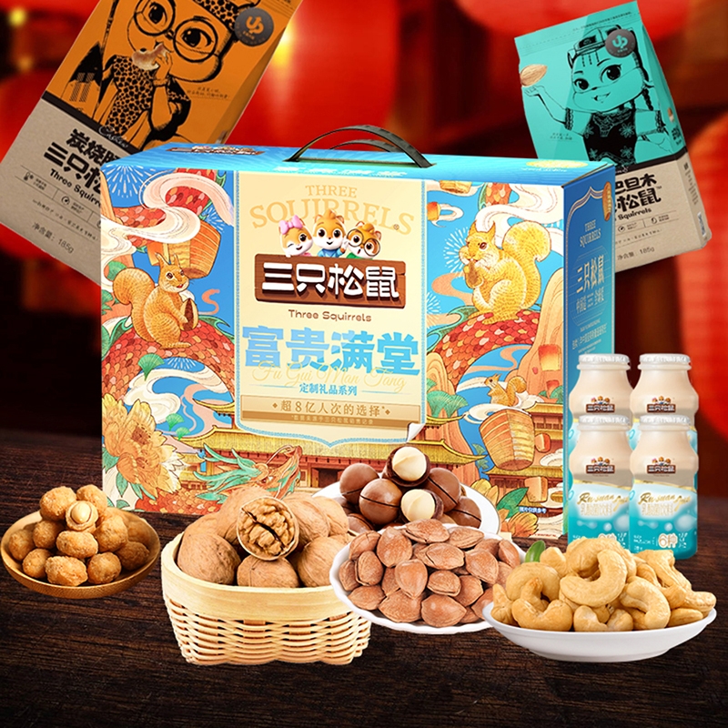 超八亿人次选择三只松鼠 全新包装,全新套餐;企业福利,走亲访友,首选三只松鼠 团购更优惠;一件发货、集采直送到家,常规备货
