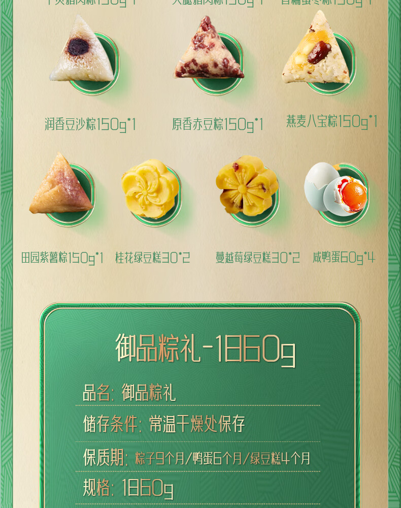 保质期:粽子9个月 鸭蛋6个月 绿豆糕4个月
