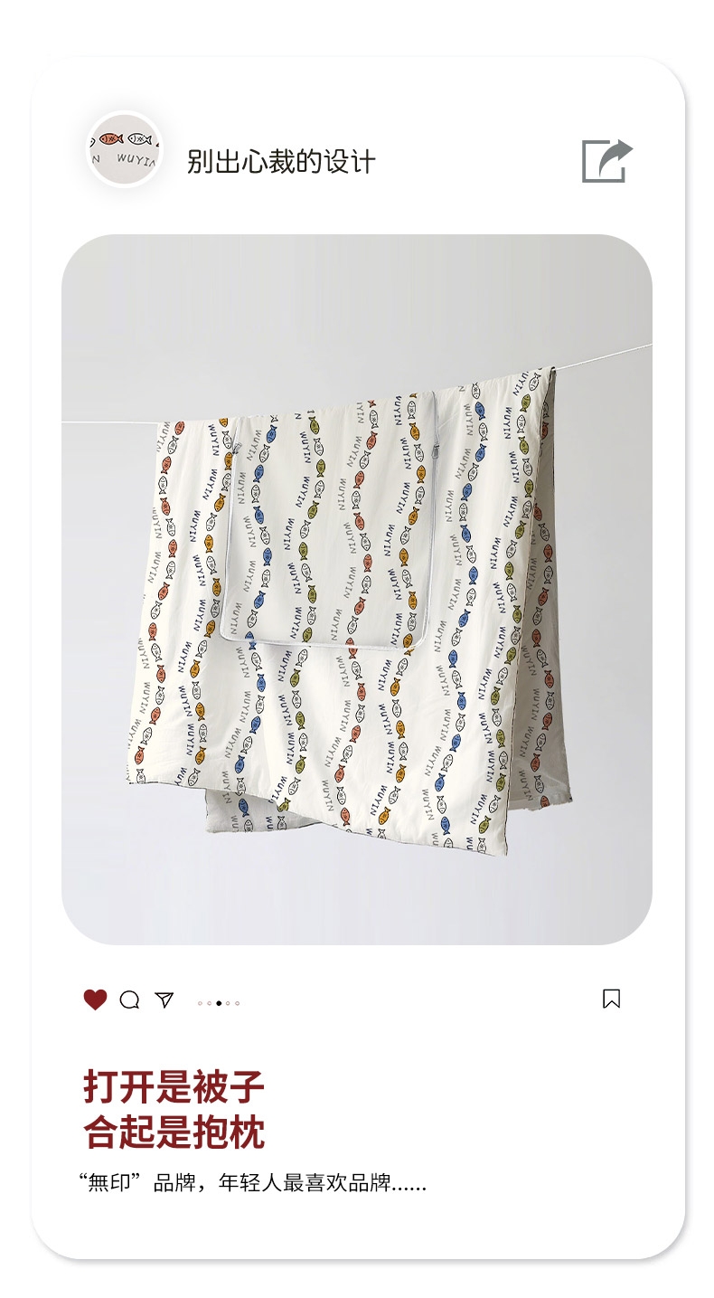 無印”品牌,年轻人最喜欢品牌;京东自营销量领先。;水洗棉面料,更柔软更亲肤,更健康更环保;打开是被子,合起是抱枕,一款多用,居家车载必备良品