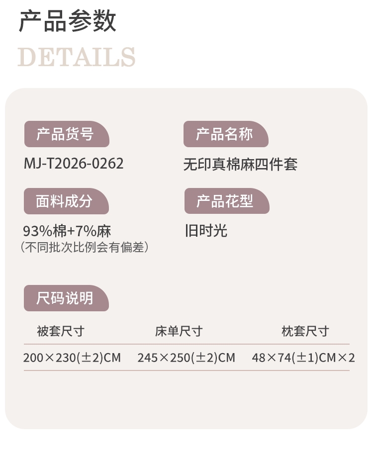 無印”品牌,年轻人最喜欢品牌;京东自营销量领先。;纯天然棉&麻面料,密度更高,更紧致,纯活性印染,更;無印新风尚设计,传承与创新
