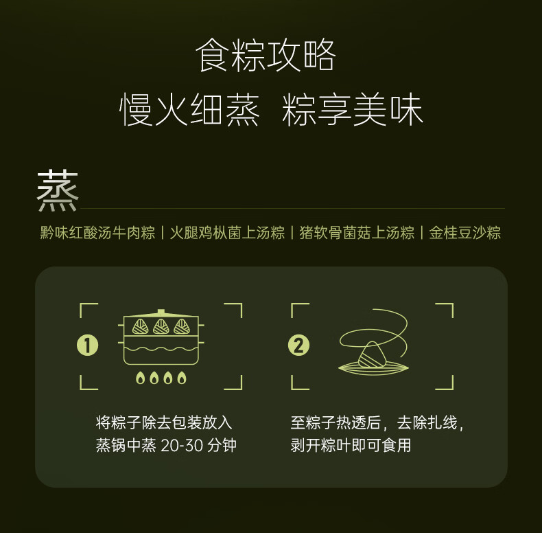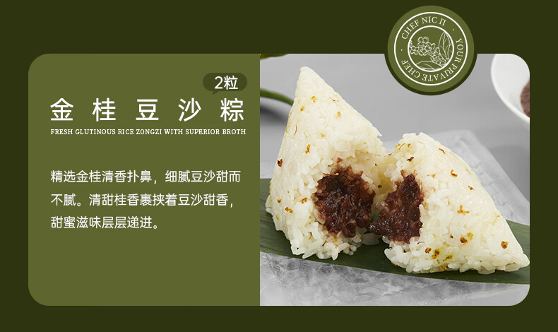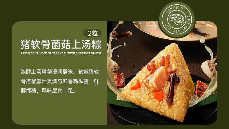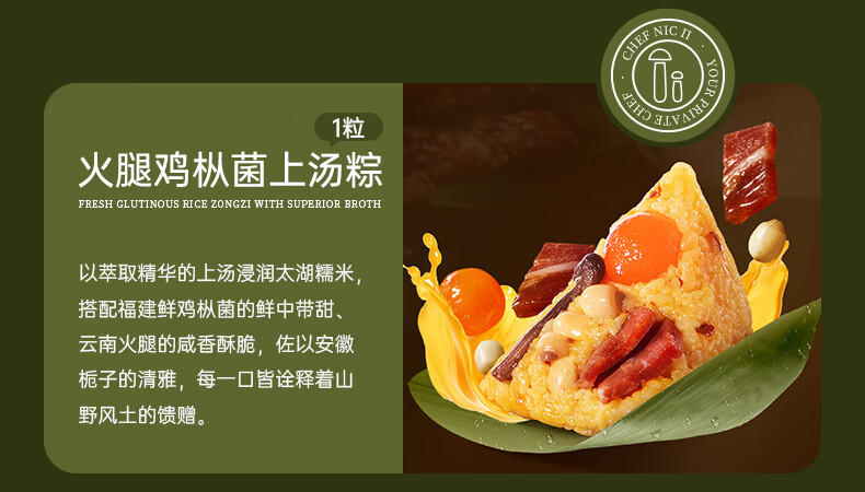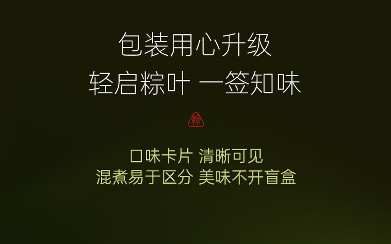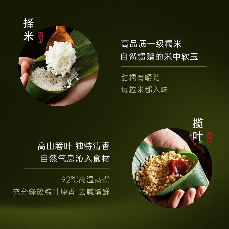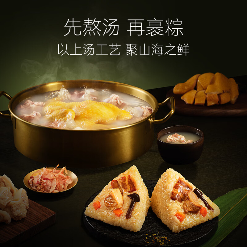 配置:【锋味派】黔味酸汤牛肉粽 100g*1 【锋味派】火腿鸡枞菌上汤粽 100g*1 【锋味派】猪软骨菌菇上汤粽 100g*2 【锋味派】金桂豆沙粽 100g*2