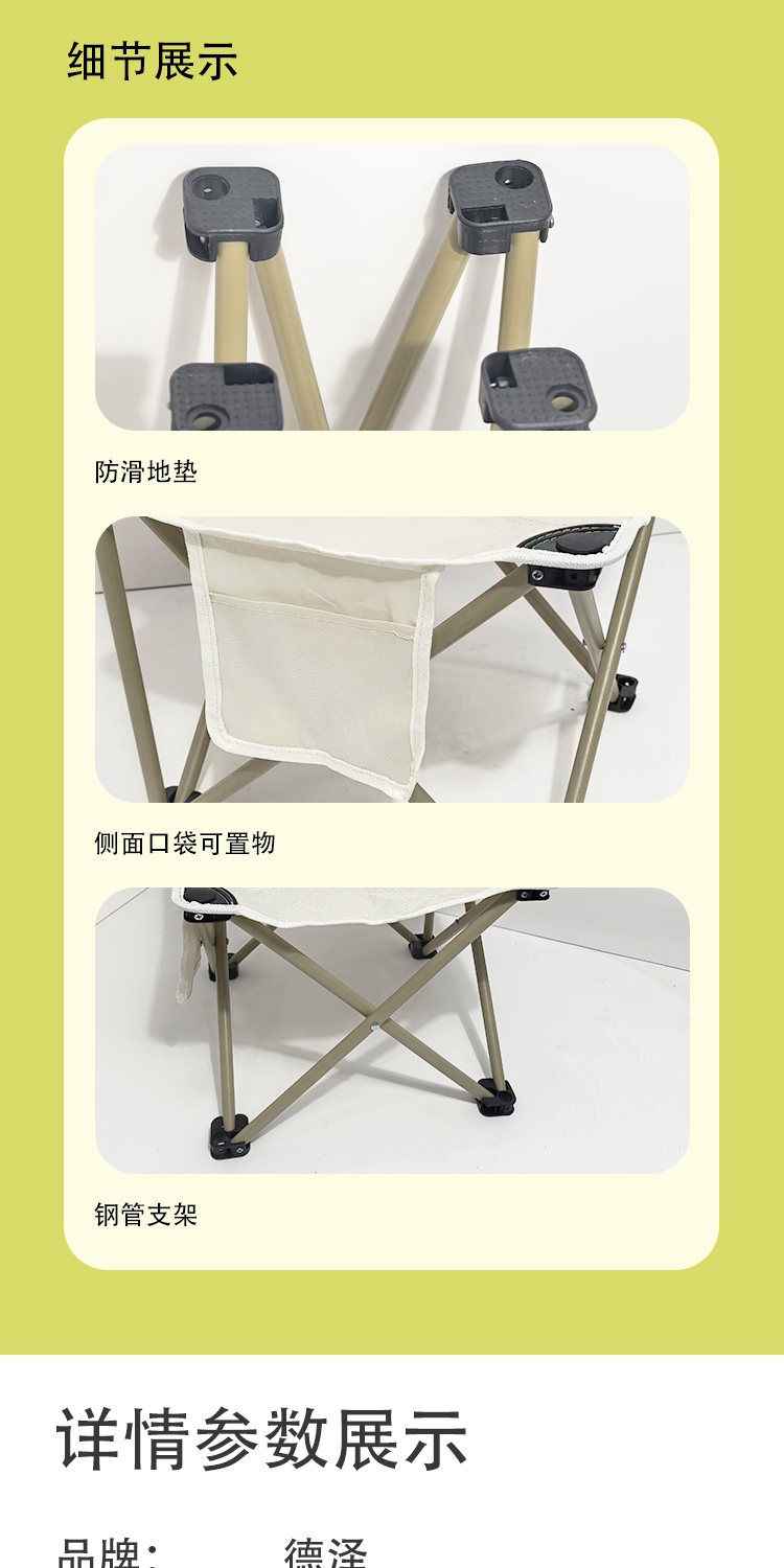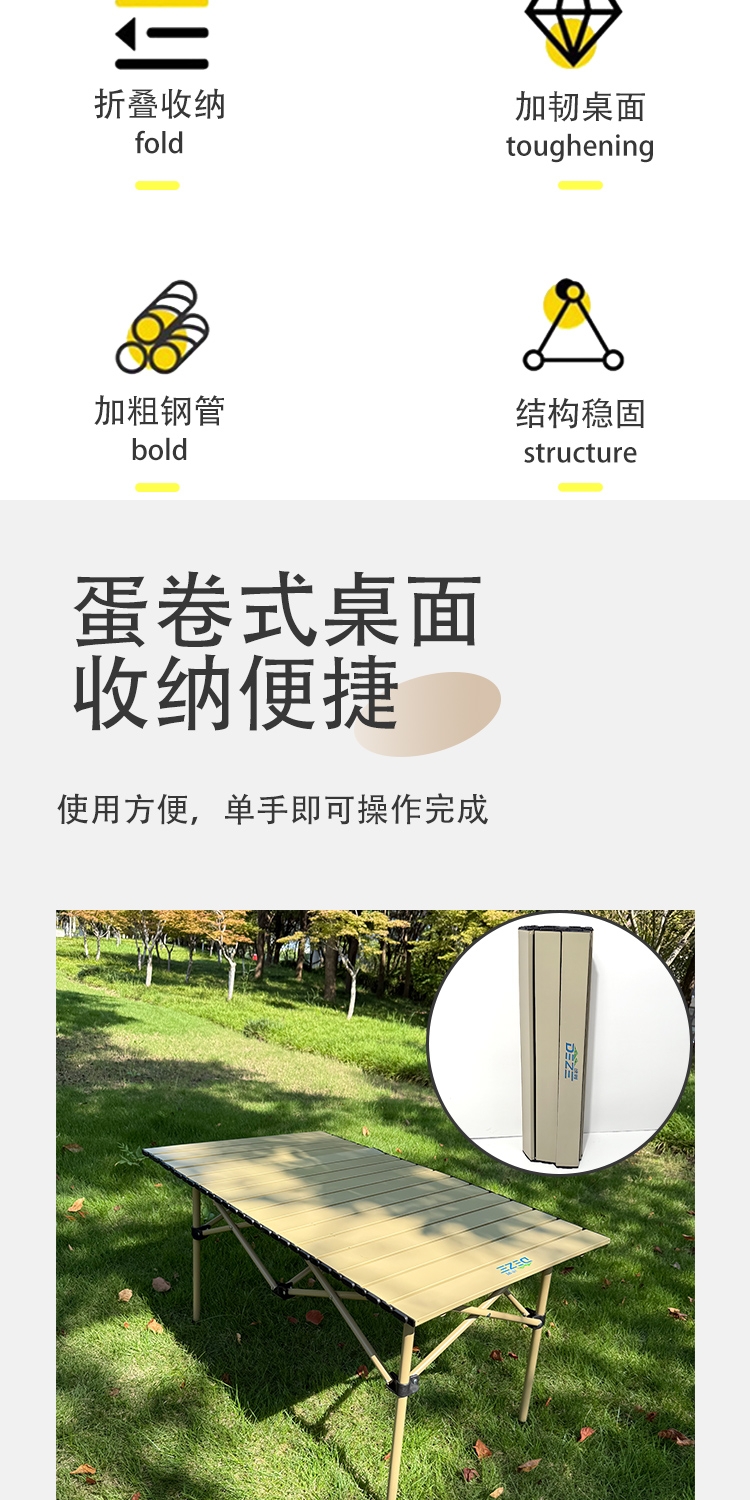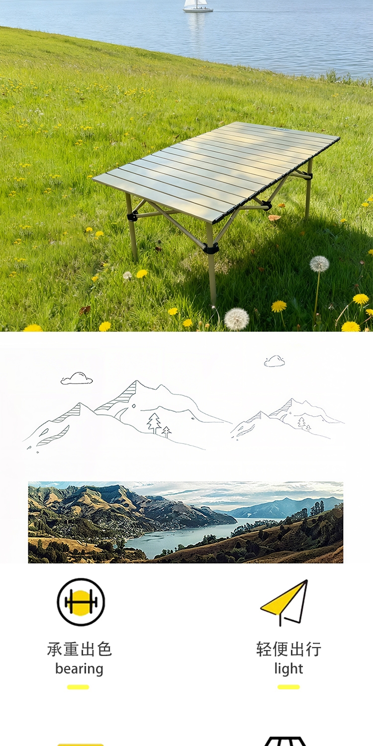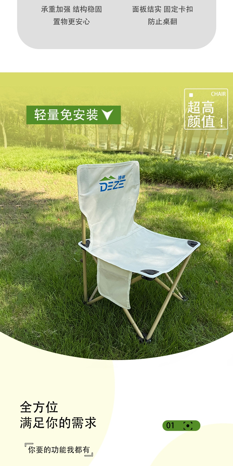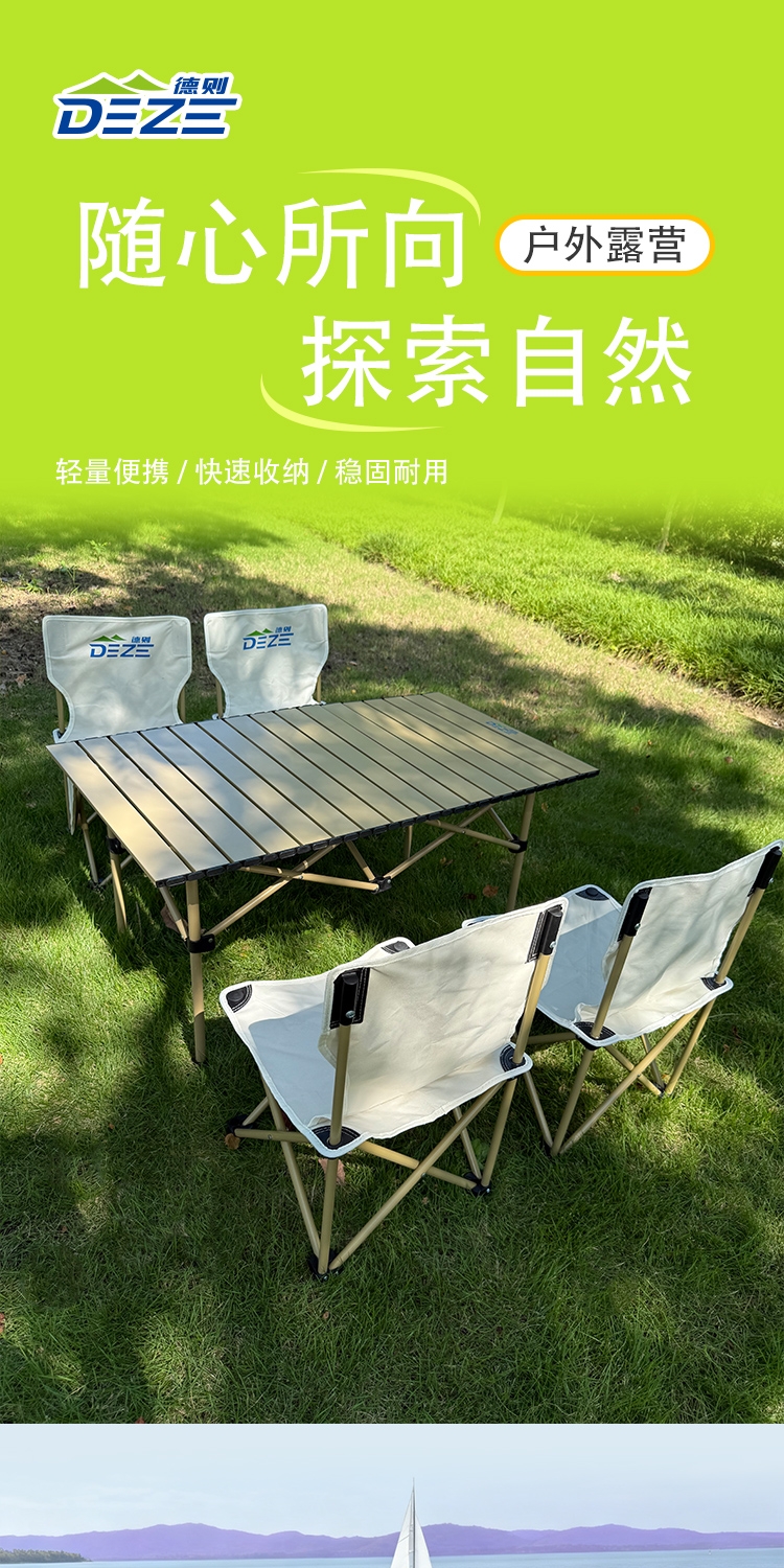 桌面防磨损处理,经久耐用;桌面不怕脏,易打理,污渍一擦即净;小巧轻便,配有手提收纳袋,单手可提;折叠椅快速收纳,不占空间;轻量便携,出游无负担