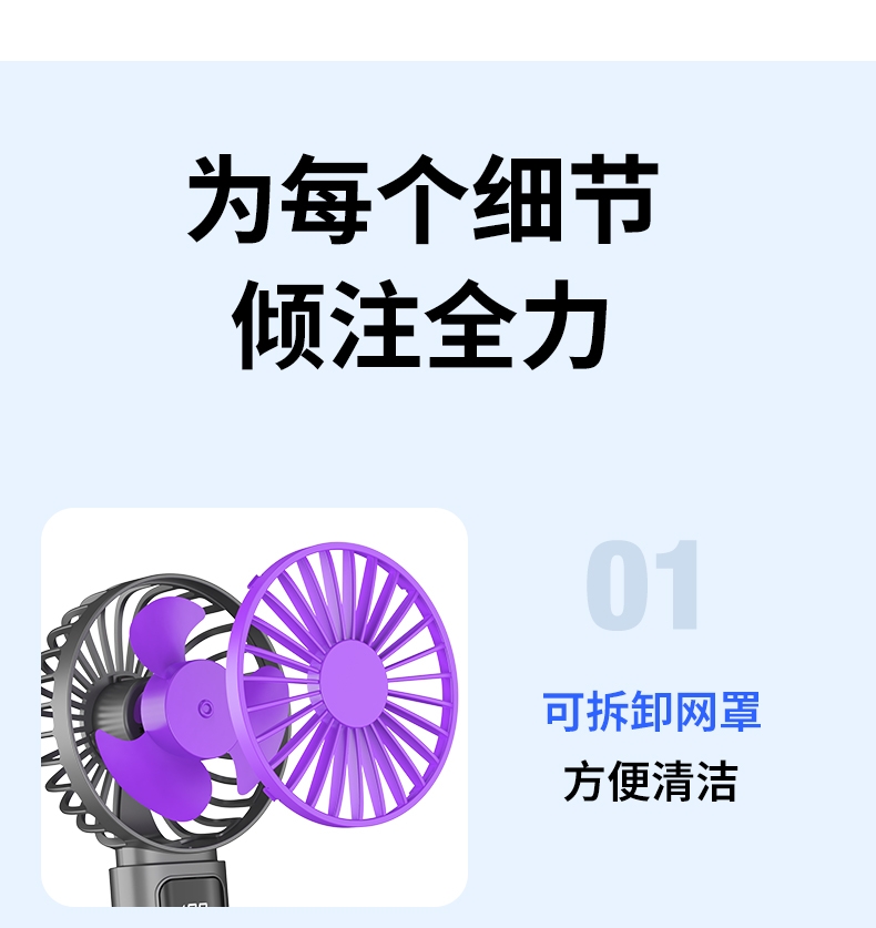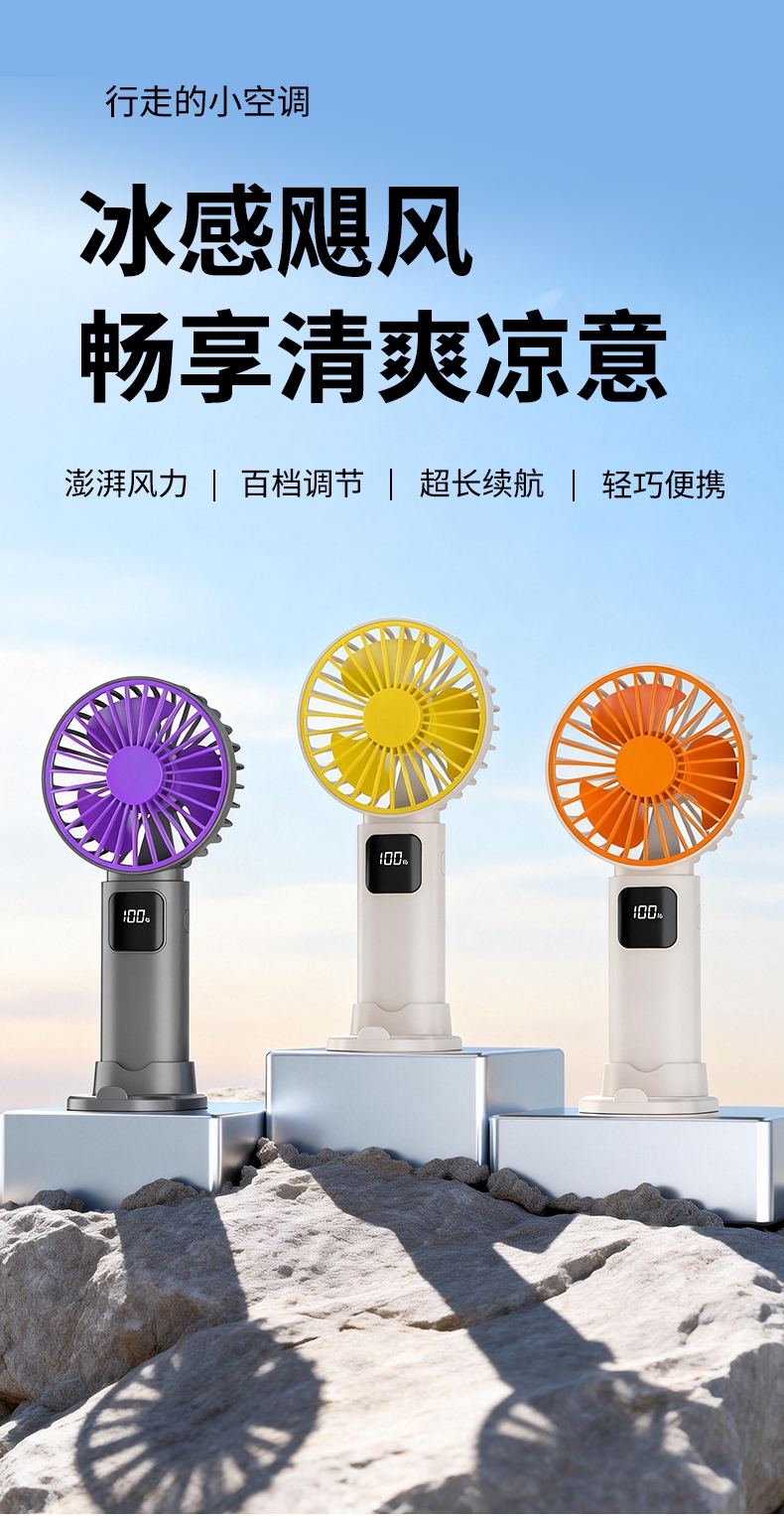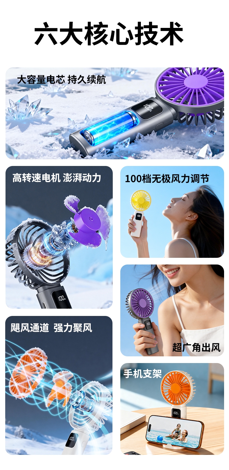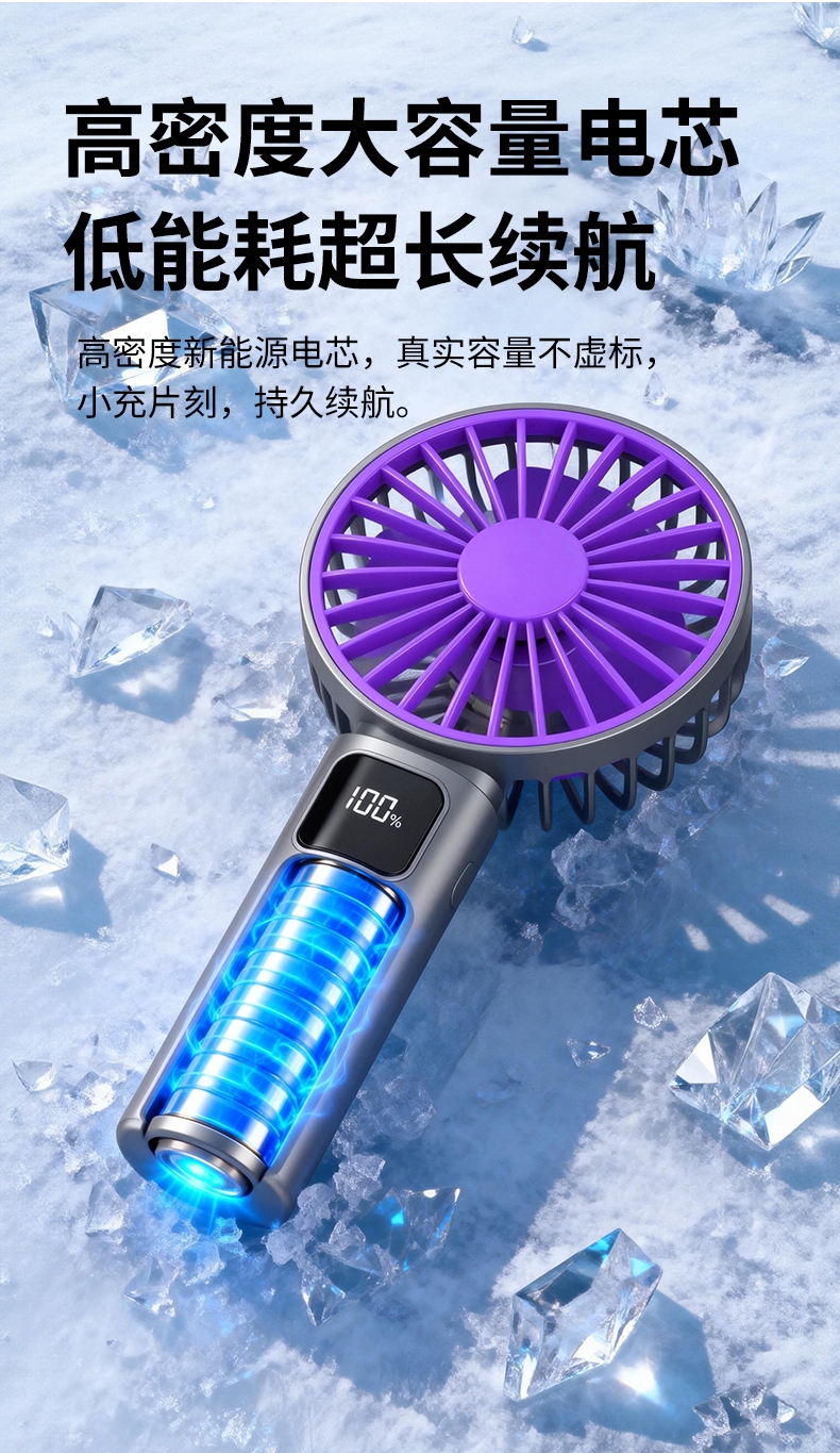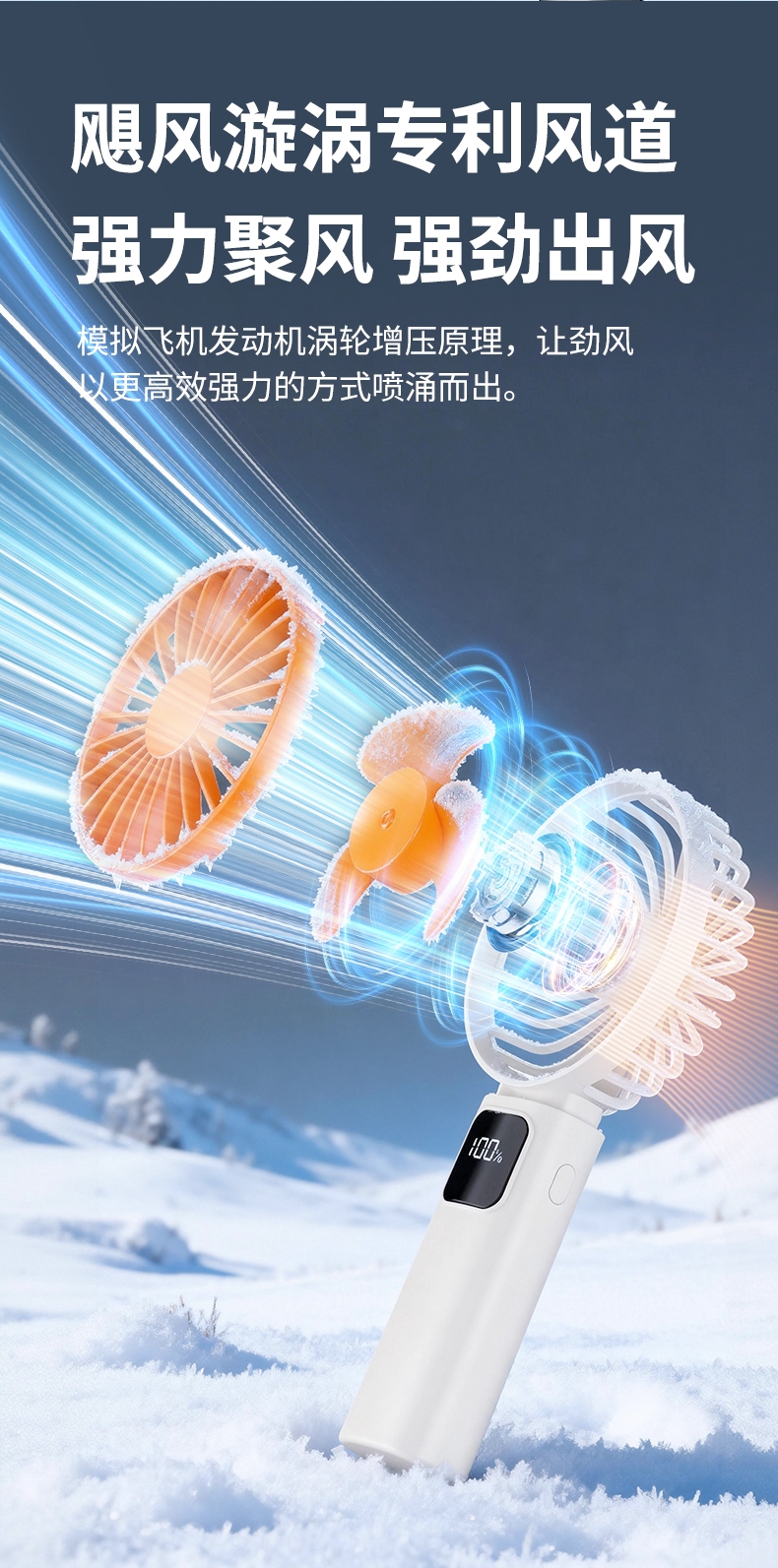 LED实时显示 风速直观感受;100档无极风力调节,风力由你定义;大容量电芯,超长续航