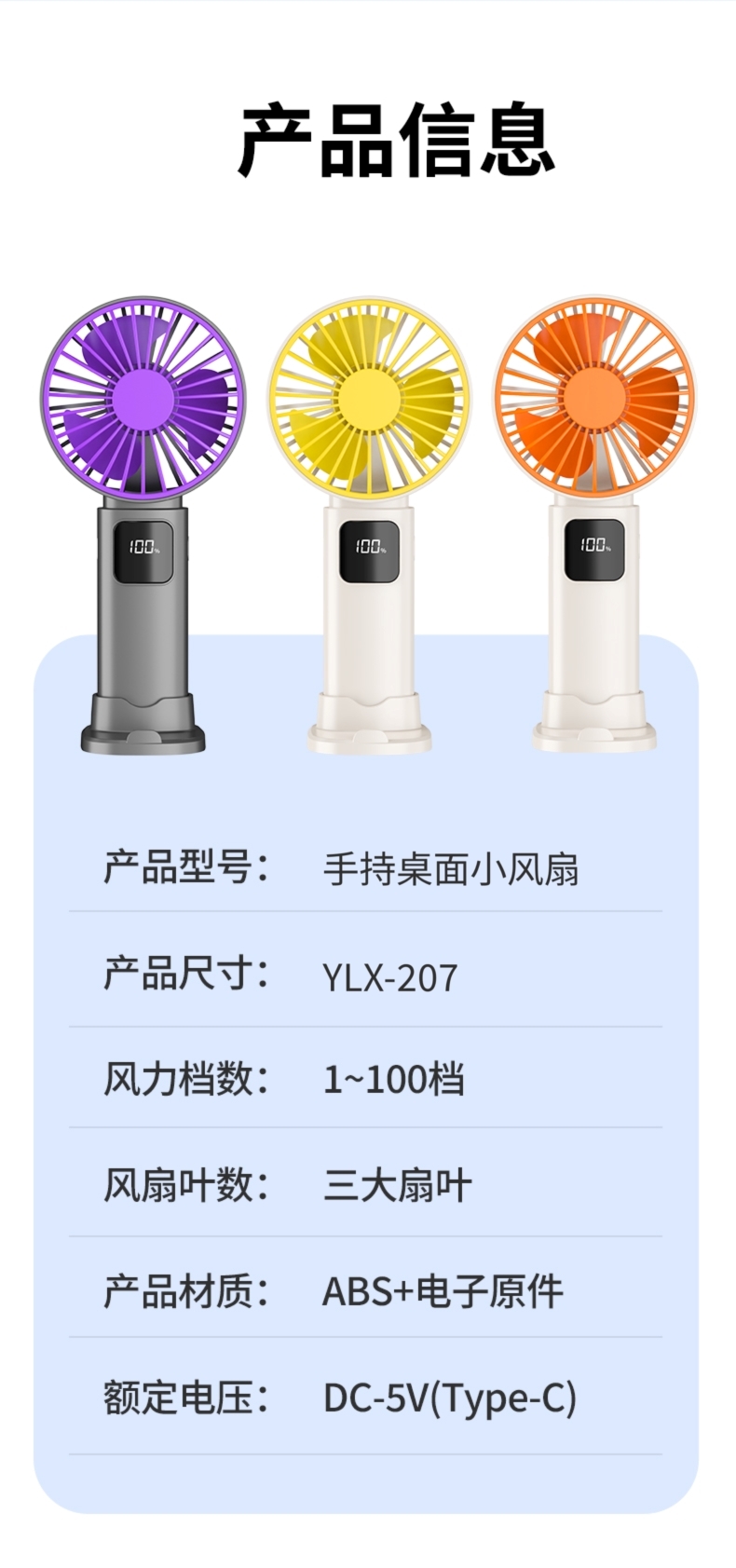 遥里逊 无线便携手持桌面小风扇充电扇YLX-207