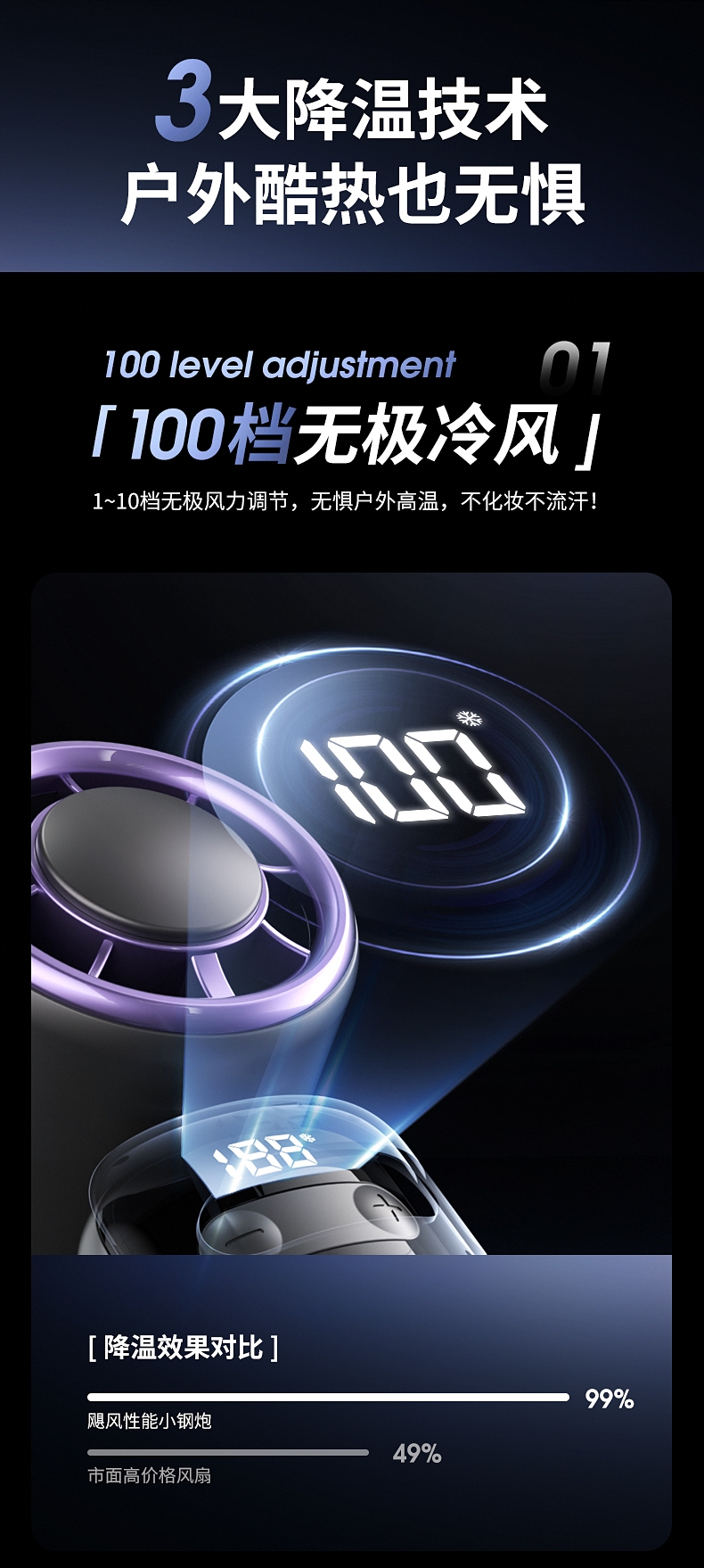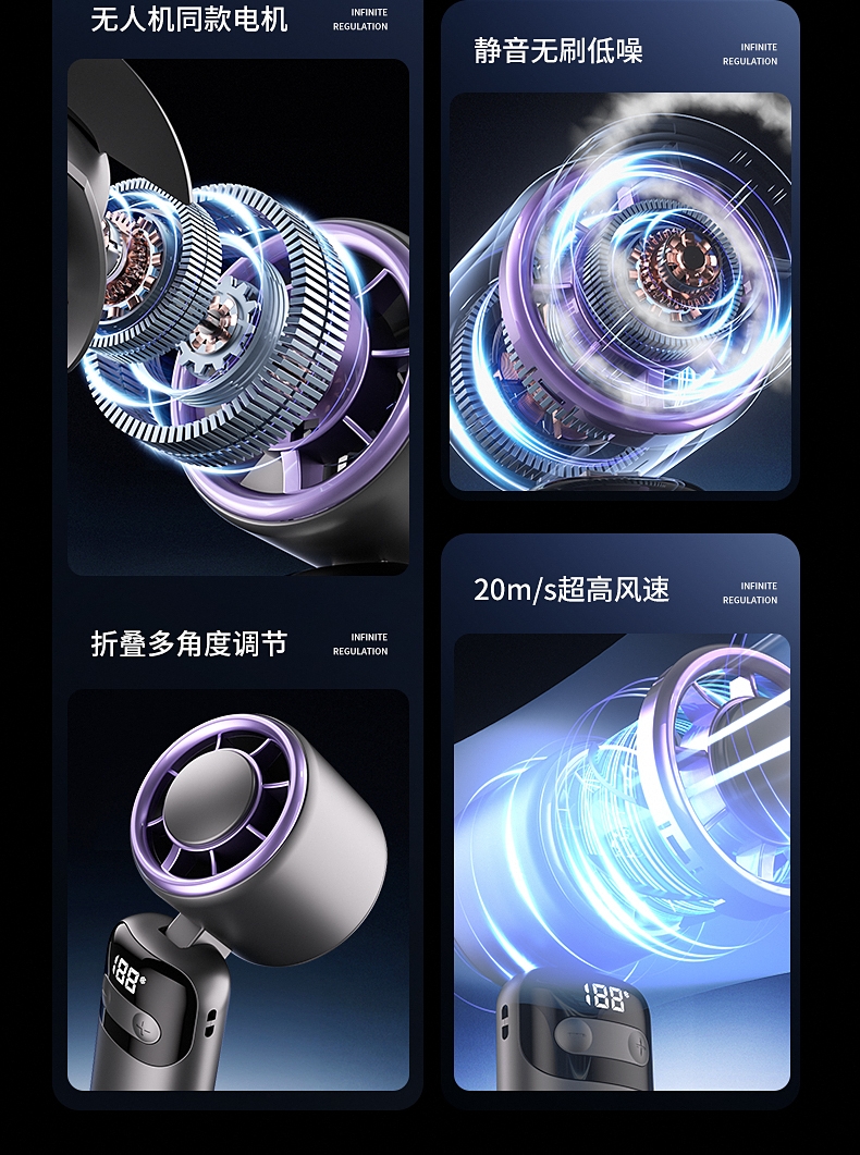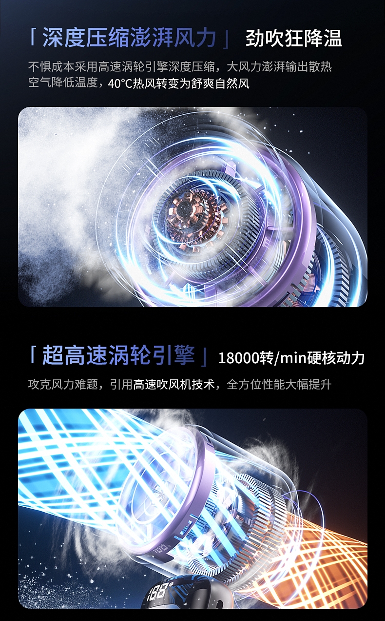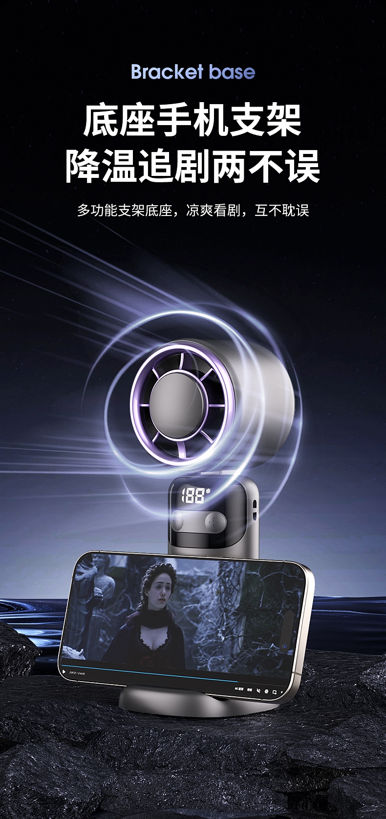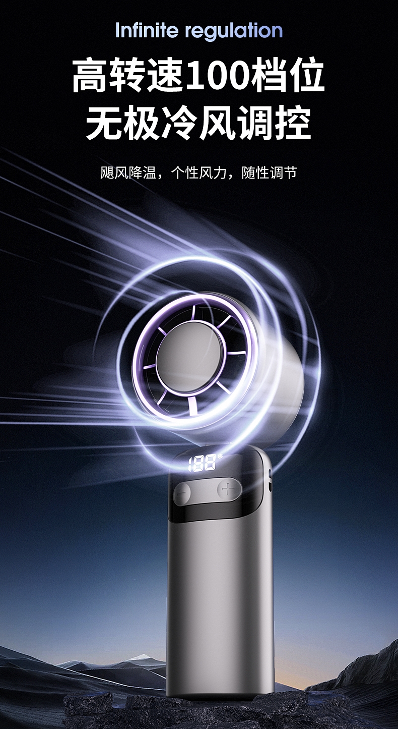 100档无极变速 无极风力调节;灵动可折叠 风扇90°可调节;底座手机支架 降温追剧两不误