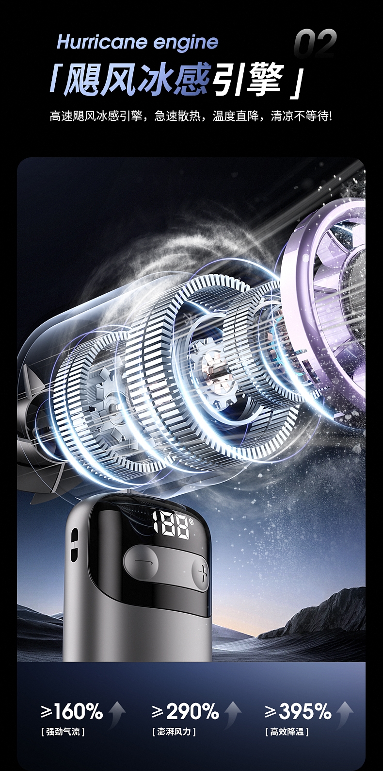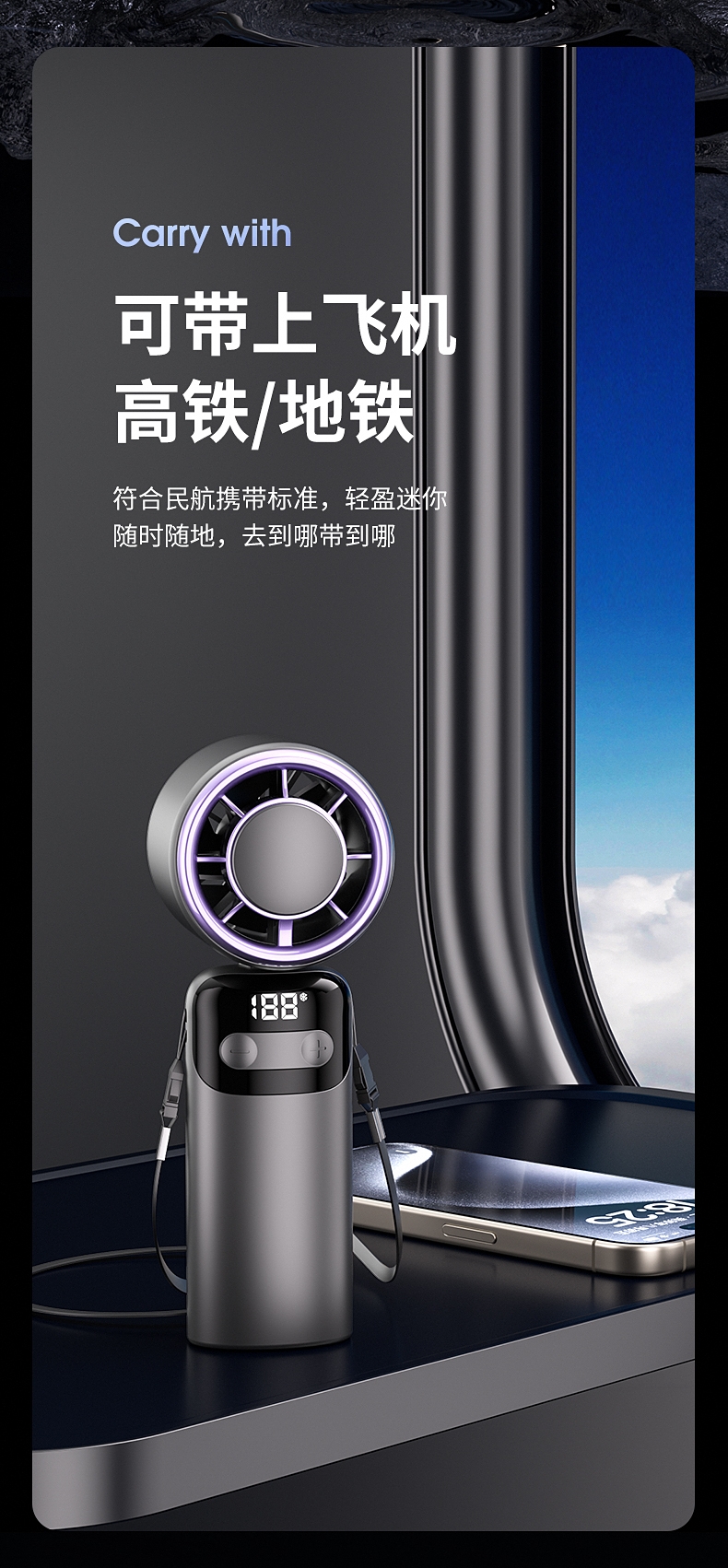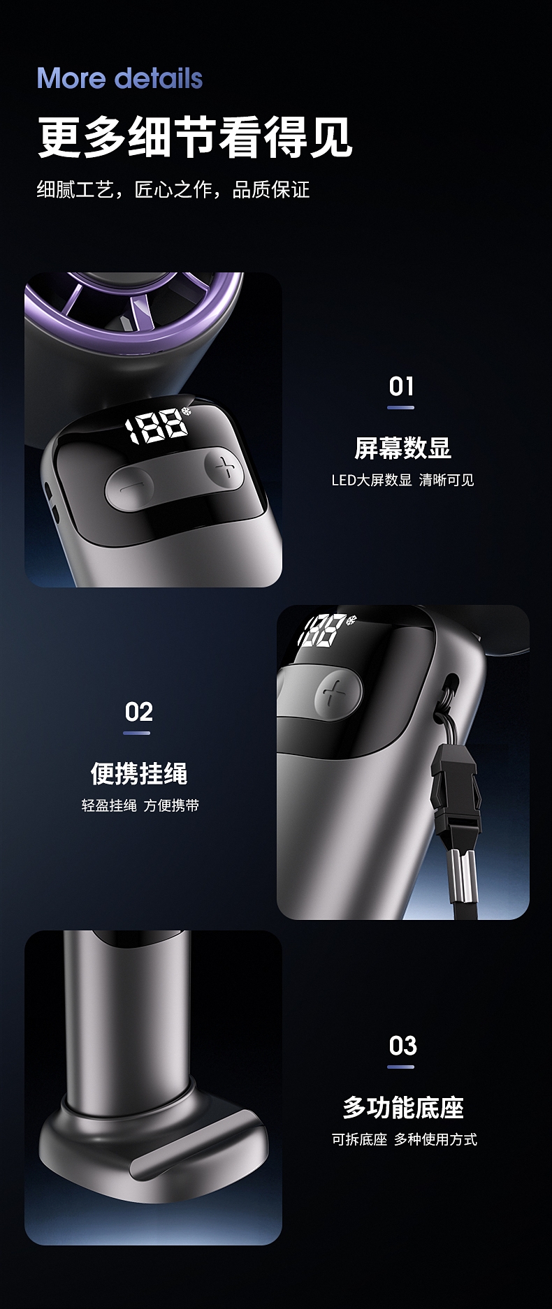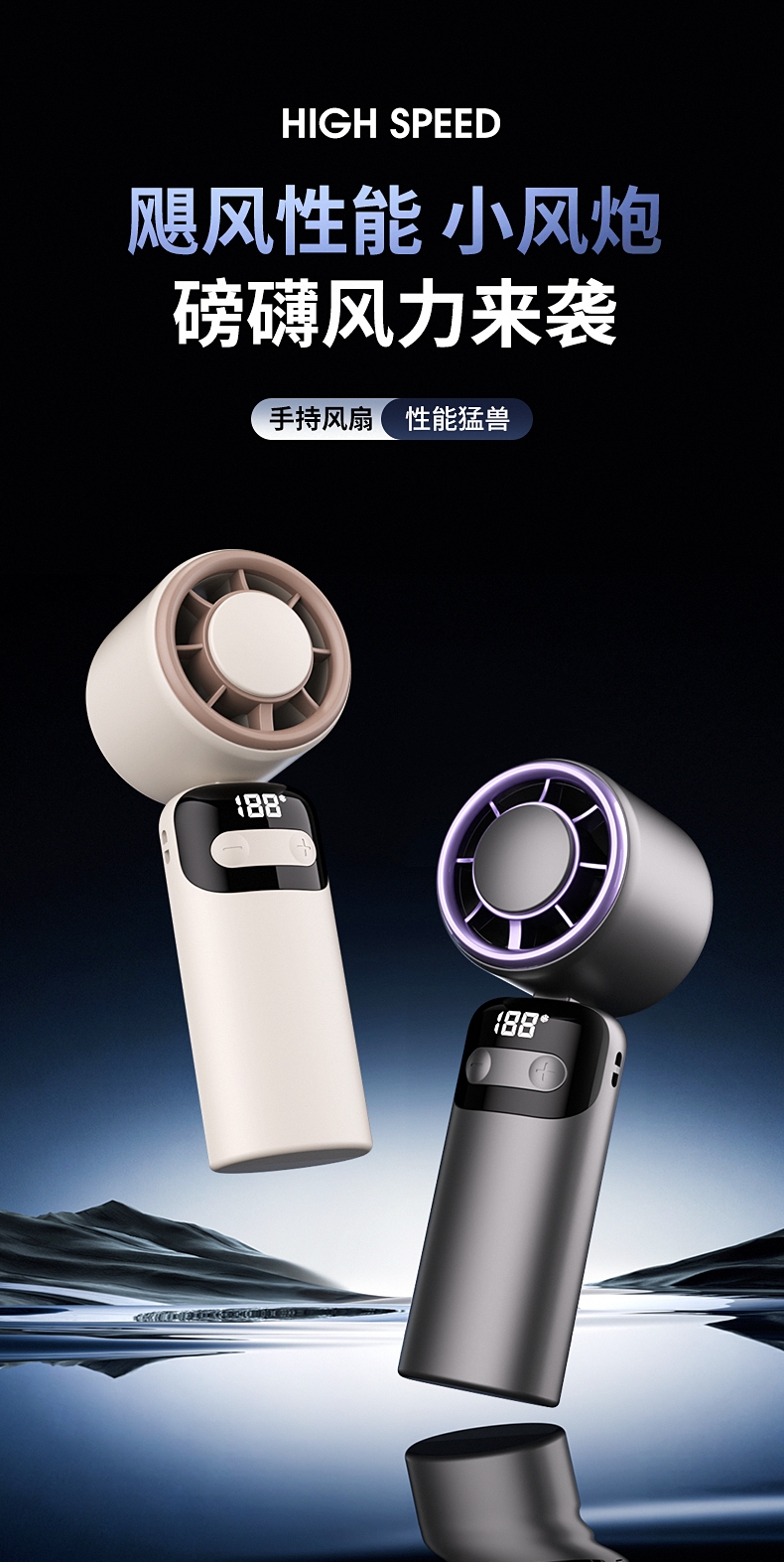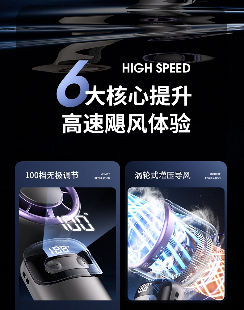 100档无极变速 无极风力调节;灵动可折叠 风扇90°可调节;底座手机支架 降温追剧两不误