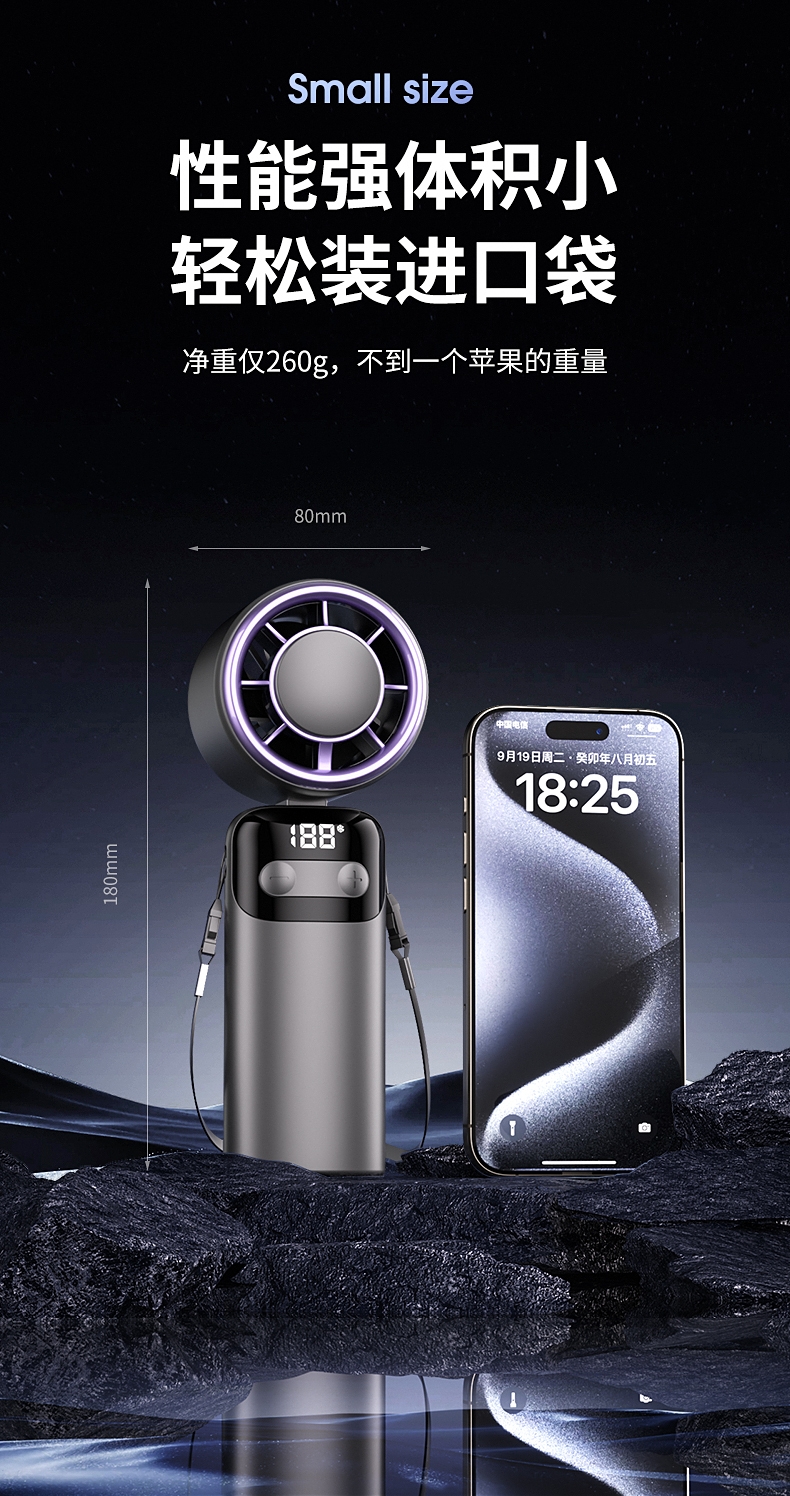 配置清单:彩盒+手持风扇+充电线+说明书