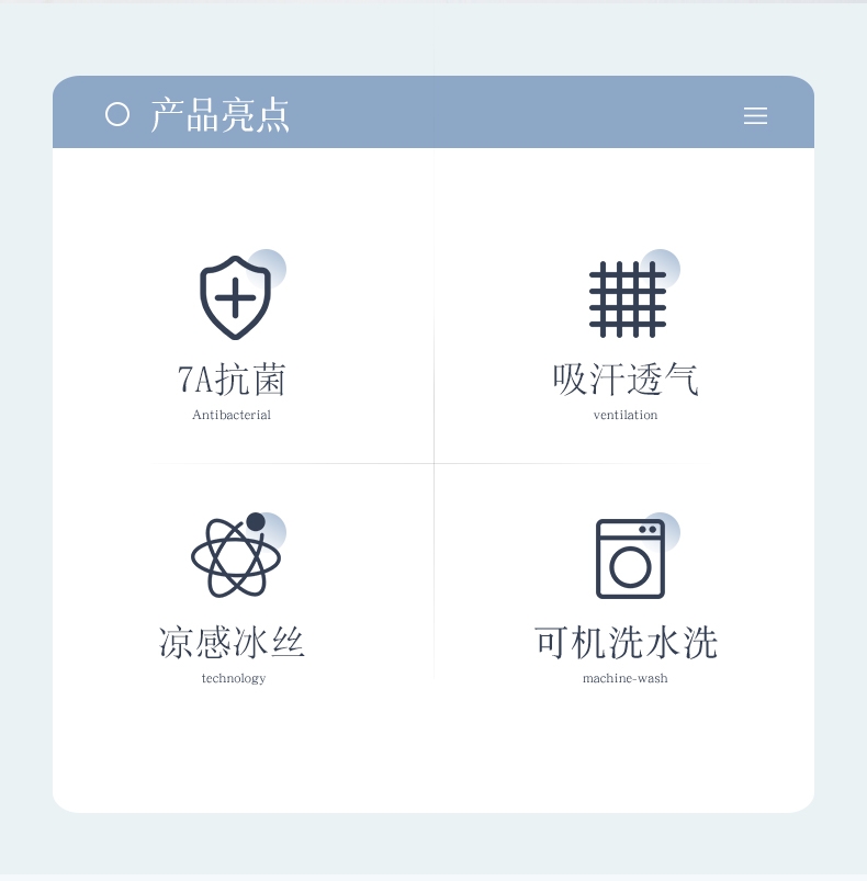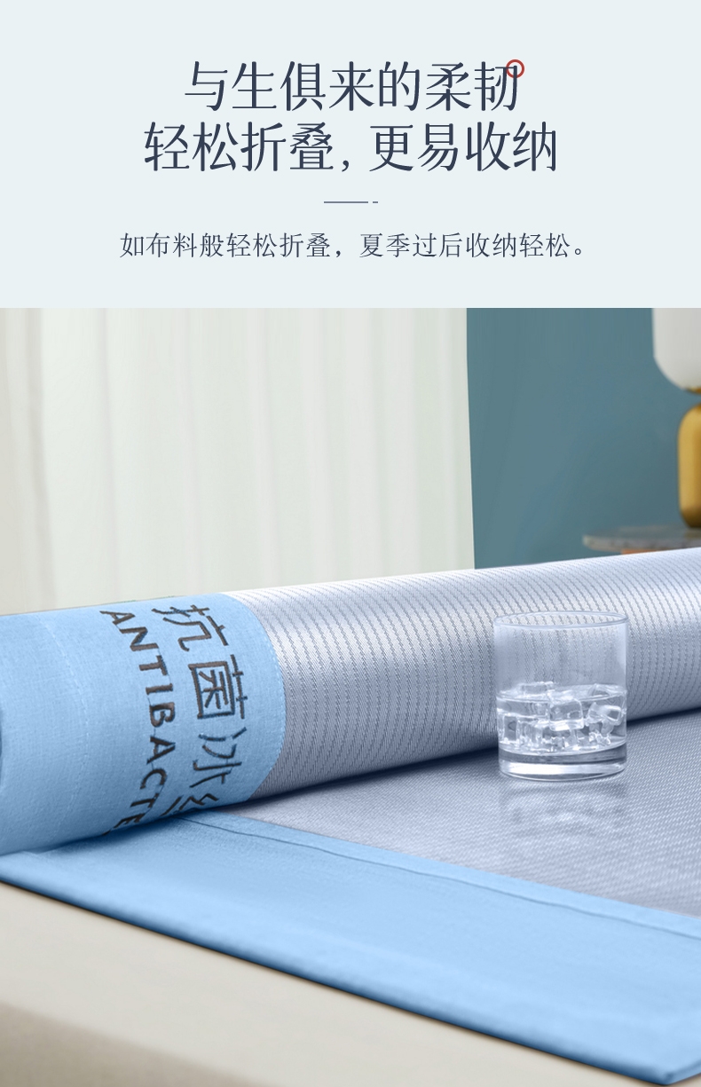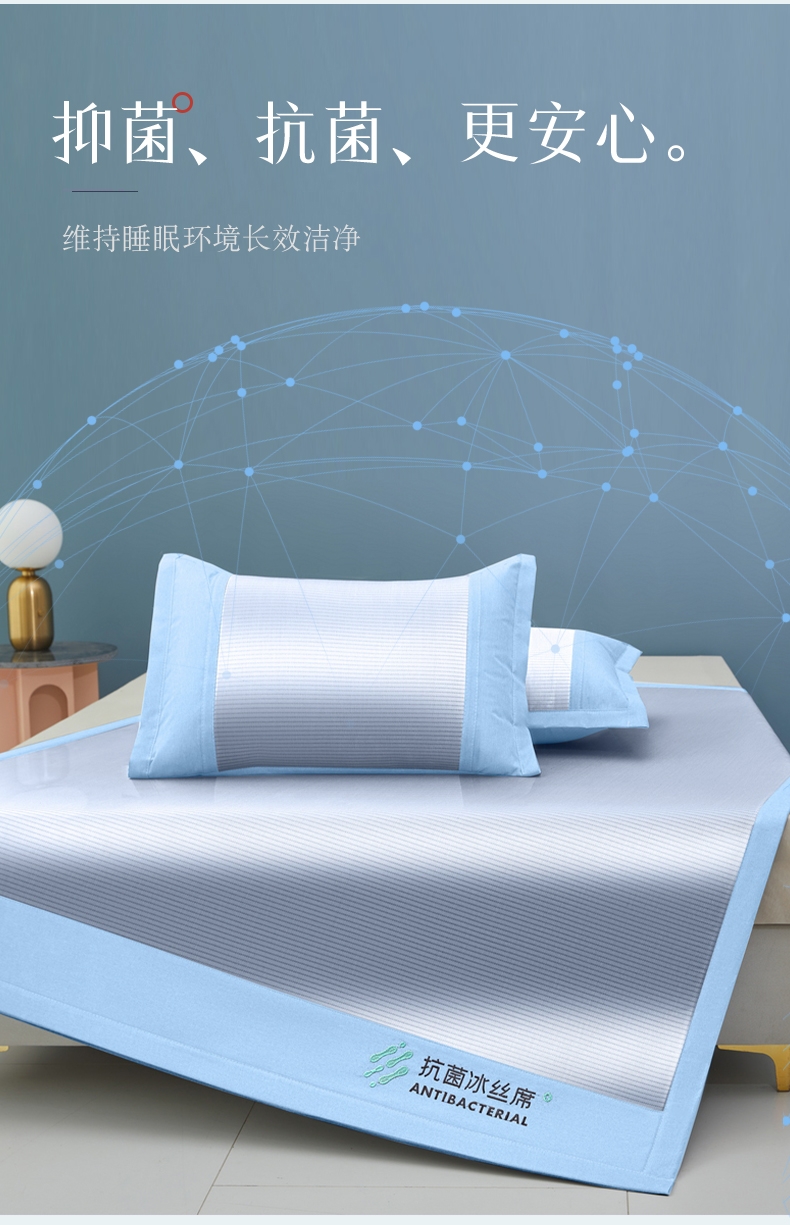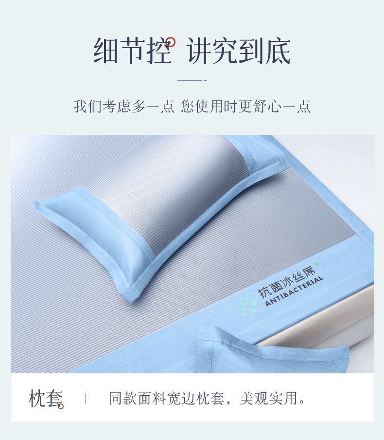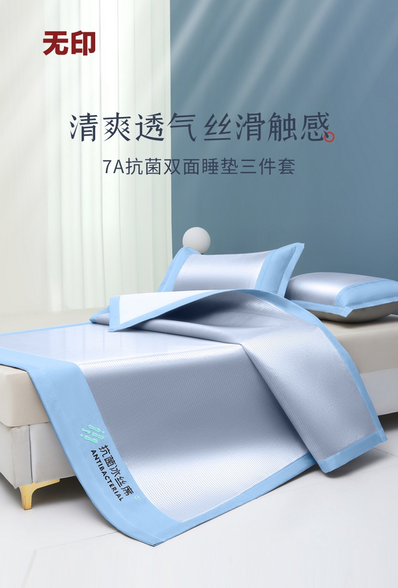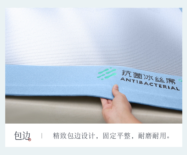 可水洗冰丝纤维---凉爽,透气,吸汗,夏凉绝佳纤维;凉席工艺,吸湿排汗。可水洗工艺,让使用更安心。;透气三明治,母婴呵护,清新夏日夜