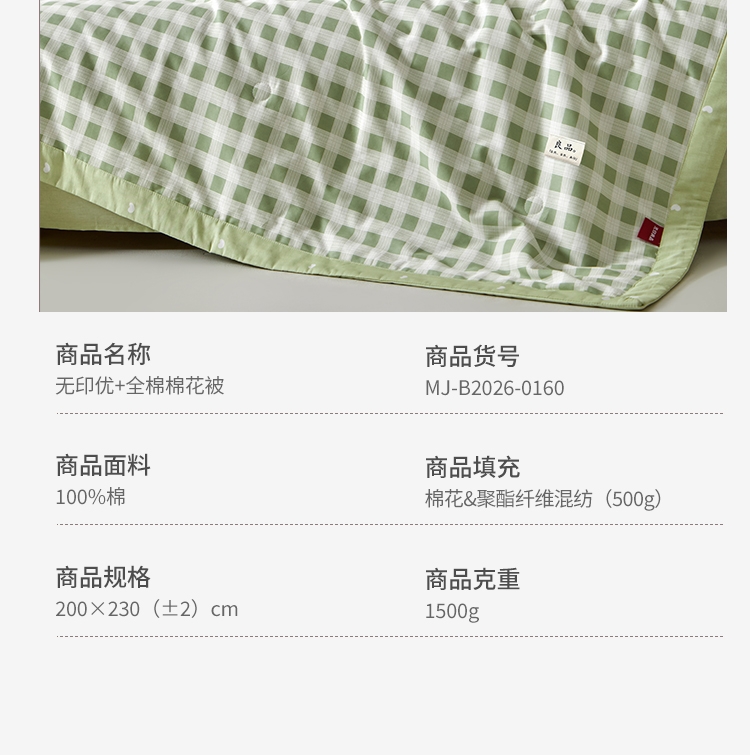 無印良品 无印优全棉棉花被MJ-B2026-0160