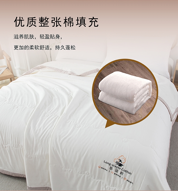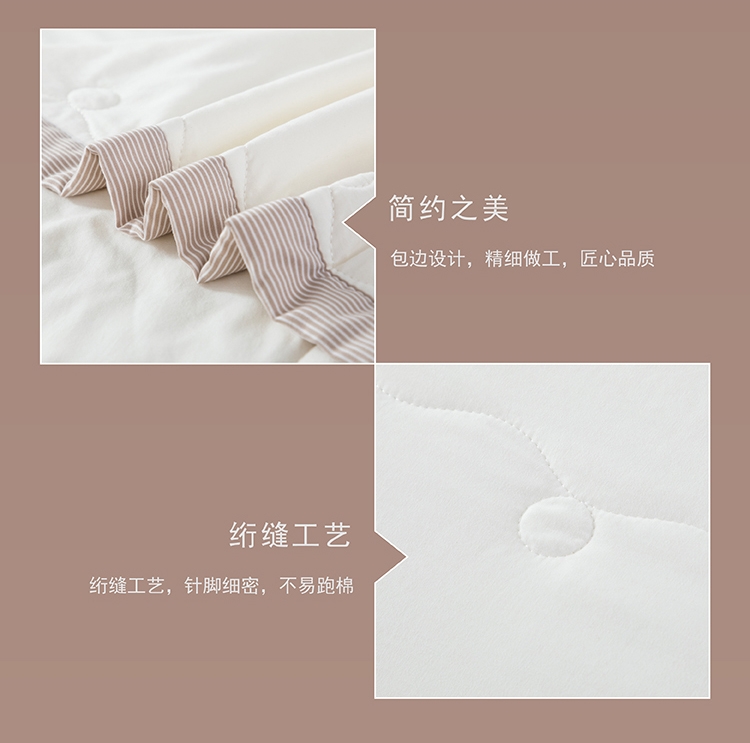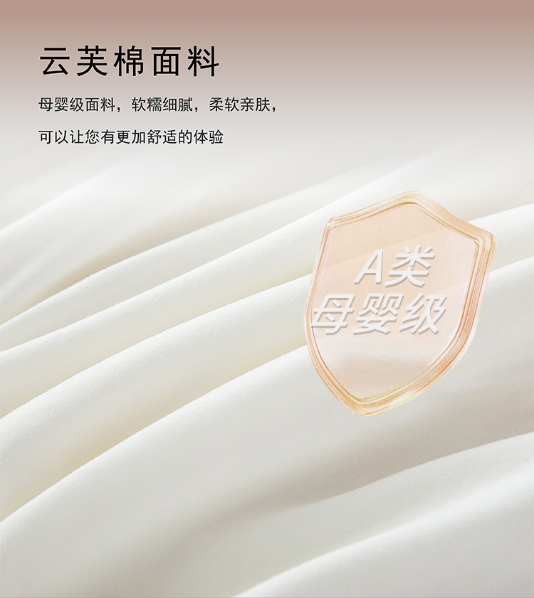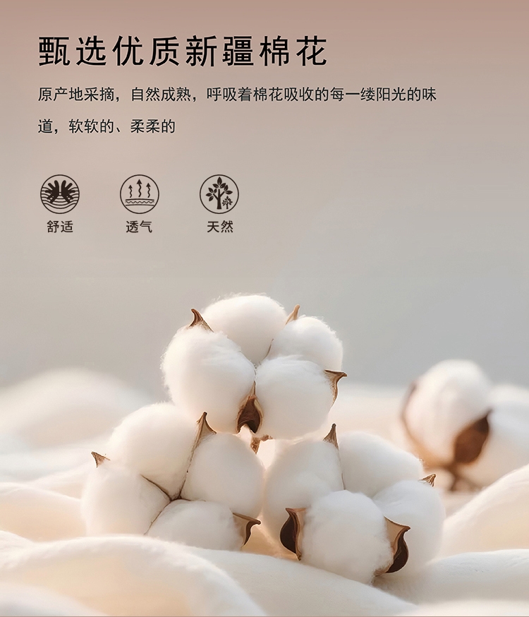 软糯细腻,柔软亲肤;内芯源自新疆棉花,整张填充,蓬松均匀;独特撞色宽边设计,简约而不简单
