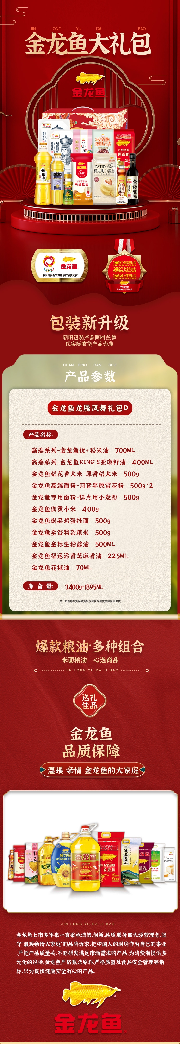 爆款粮油,多种组合;严格甄选原料,严格质量及食品安全管理等指标;礼盒设计精美,包装大气喜庆,性价比高,值得购买