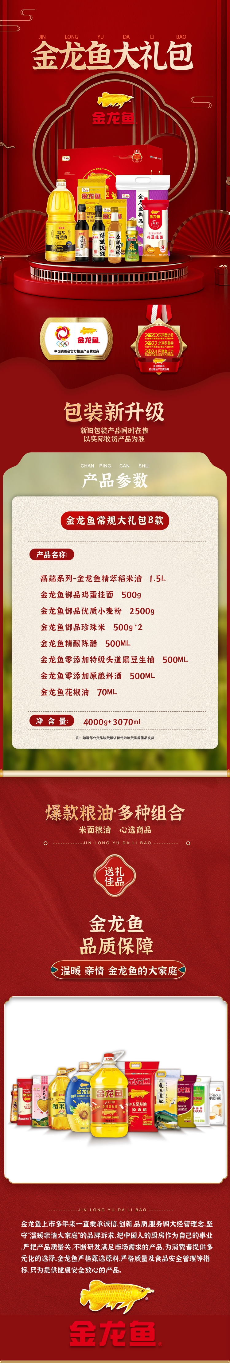 爆款粮油,多种组合;严格甄选原料,严格质量及食品安全管理等指标;礼盒设计精美,包装大气喜庆,性价比高,值得购买