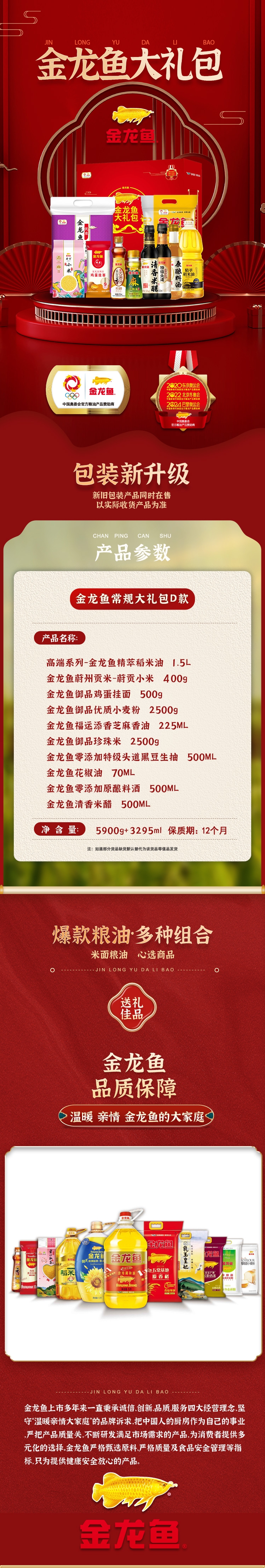 爆款粮油,多种组合;严格甄选原料,严格质量及食品安全管理等指标;礼盒设计精美,包装大气喜庆,性价比高,值得购买