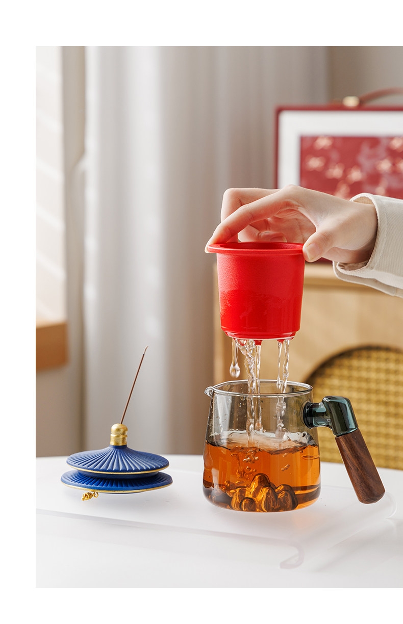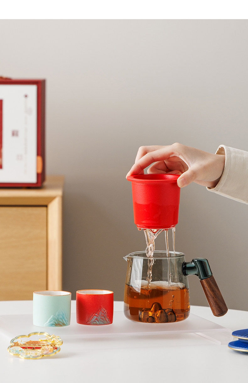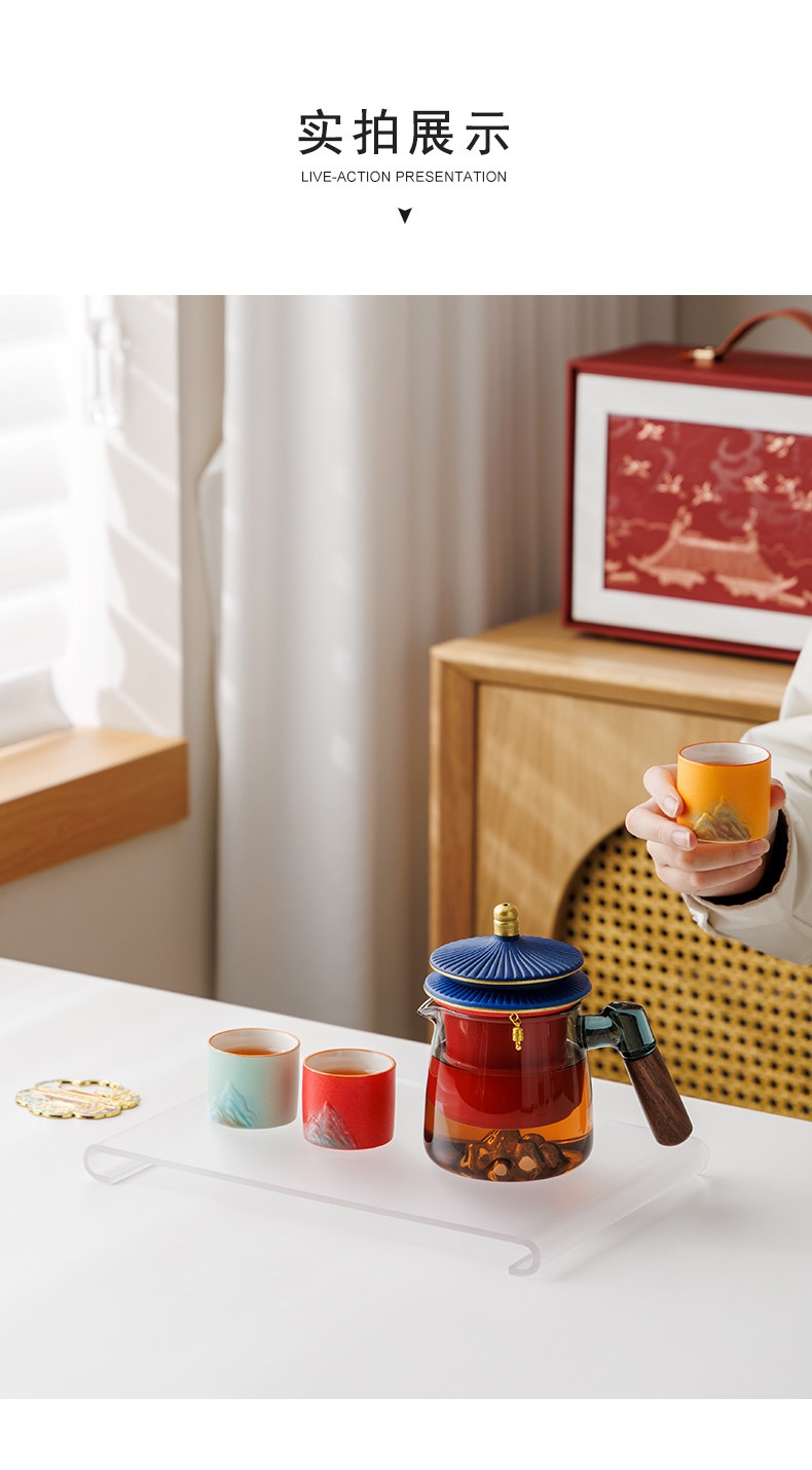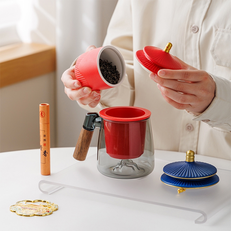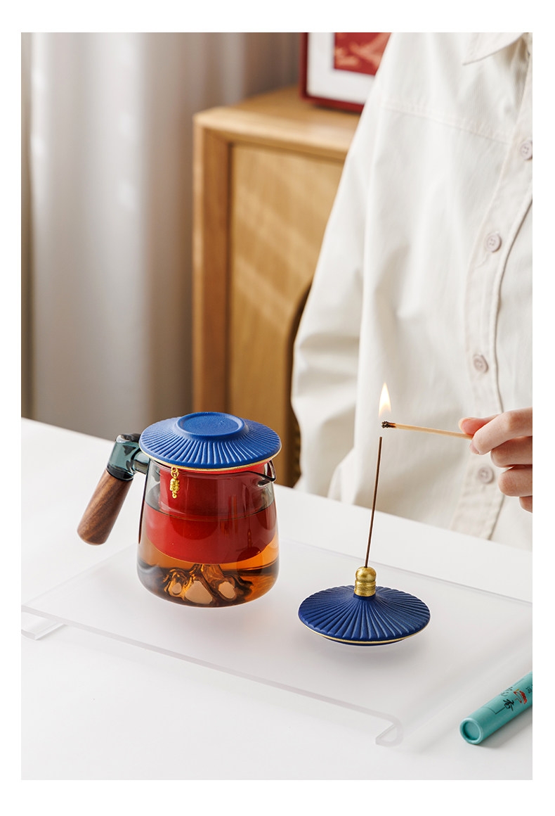 套装融入故宫经典元素,如祥云、飞鸟等传统纹饰;配套礼盒设计精美红色为主色调,彰显高端大气;附赠冰箱贴和线香,冰箱贴具有故宫特色,可作装饰