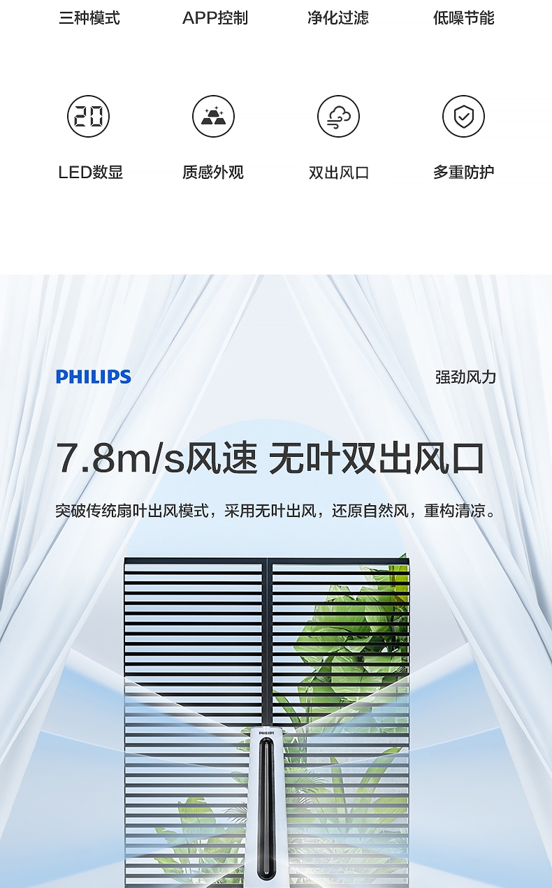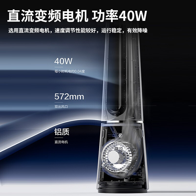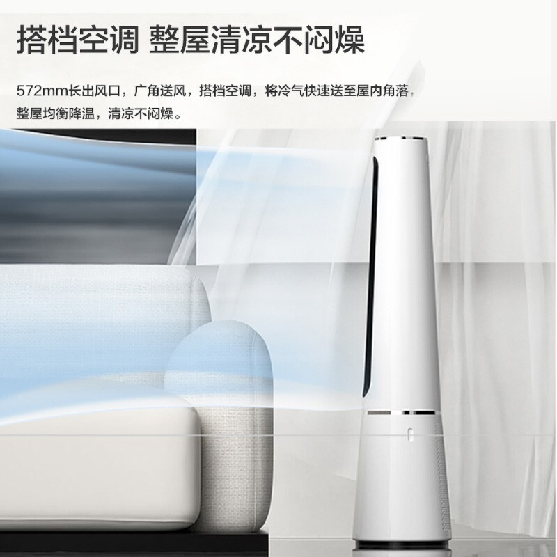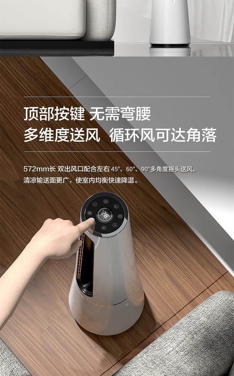 直流变频电机 空气循环 无扇叶;急速降温 凉而不寒;广角送风 24档风速 APP控制 LED数显