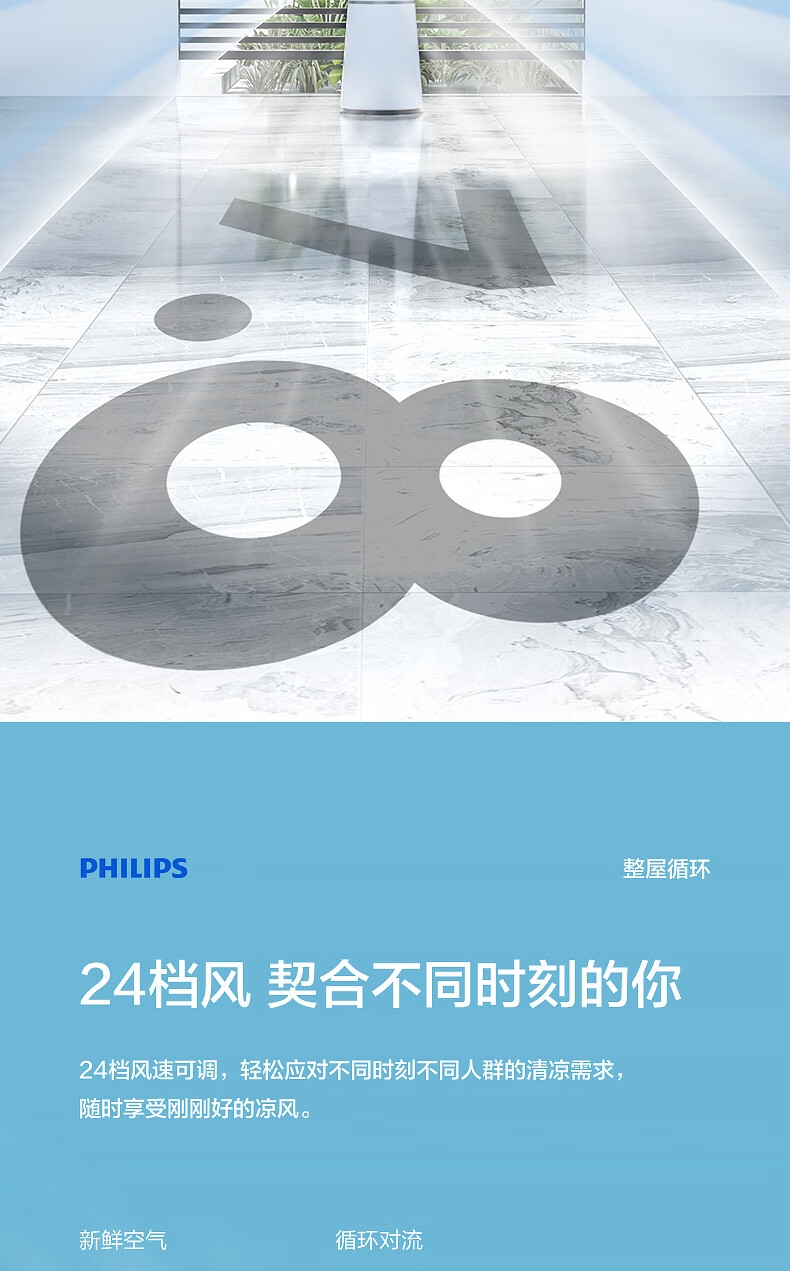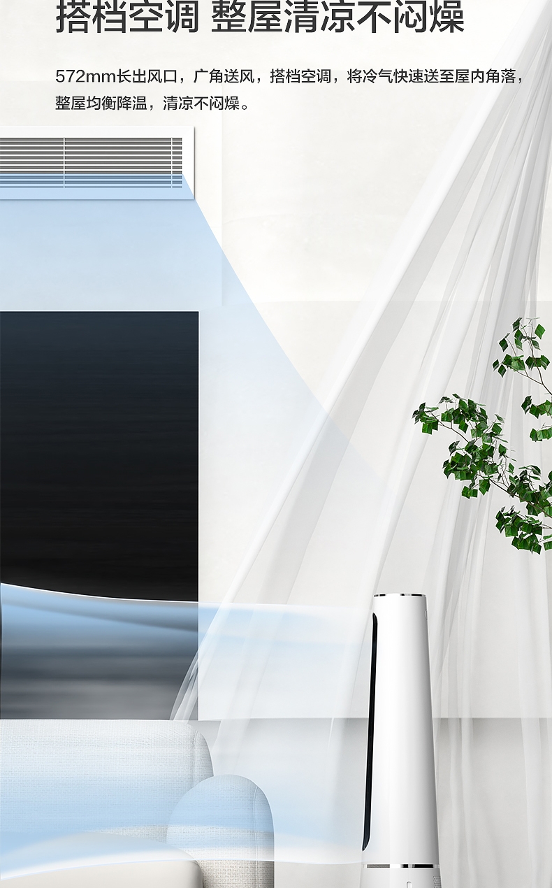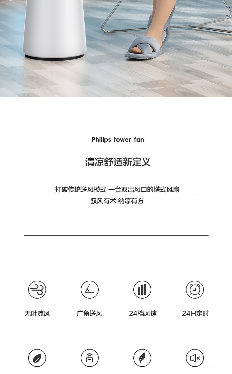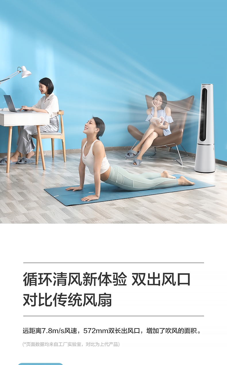 直流变频电机 空气循环 无扇叶;急速降温 凉而不寒;广角送风 24档风速 APP控制 LED数显