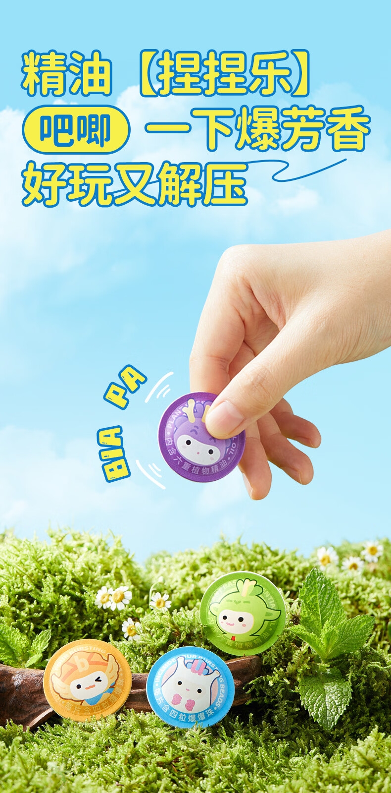 薰衣草精油、洋甘菊精油、檀香精油、佛手柑精油;温和配方,快速释放,持久留香,全家适用。;科学配比调制清新芬芳精油爆珠随捏随享