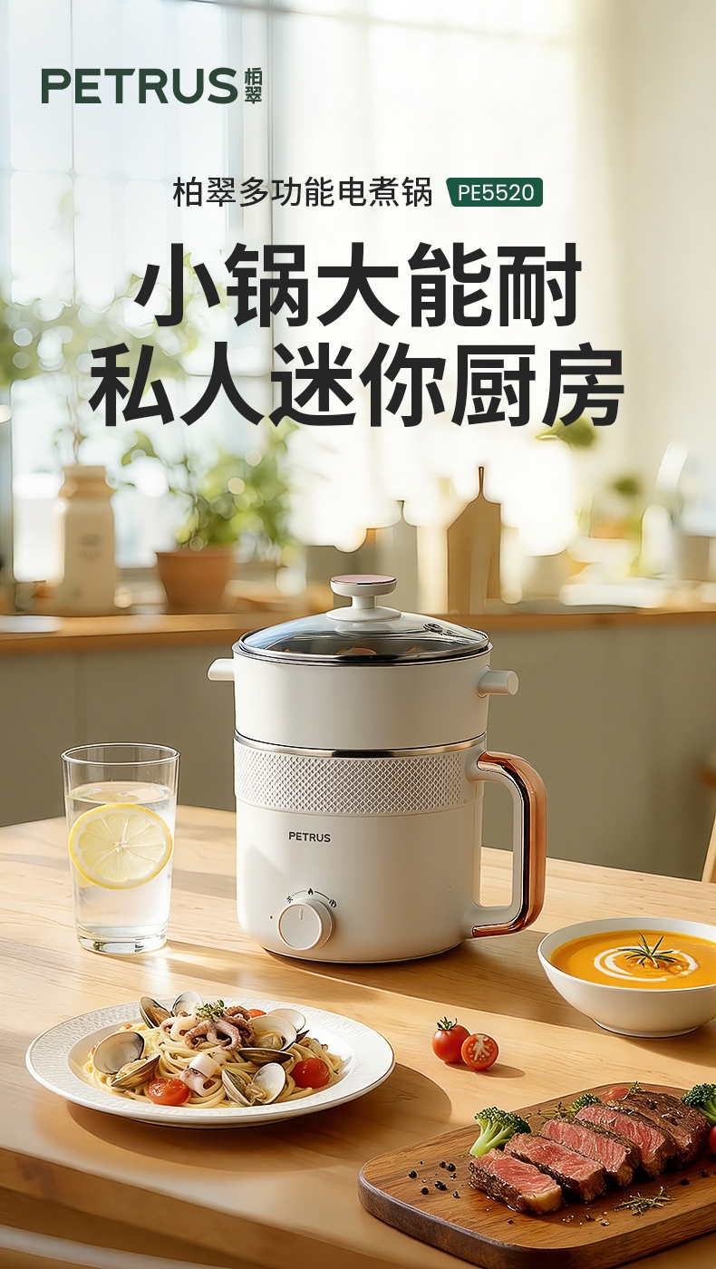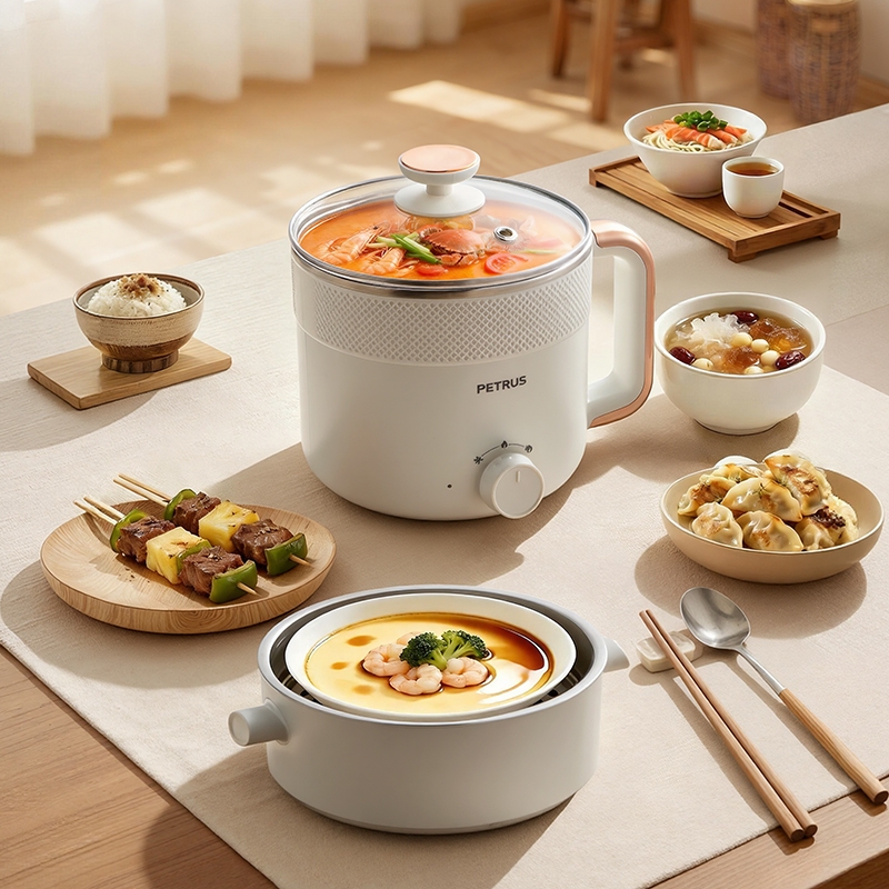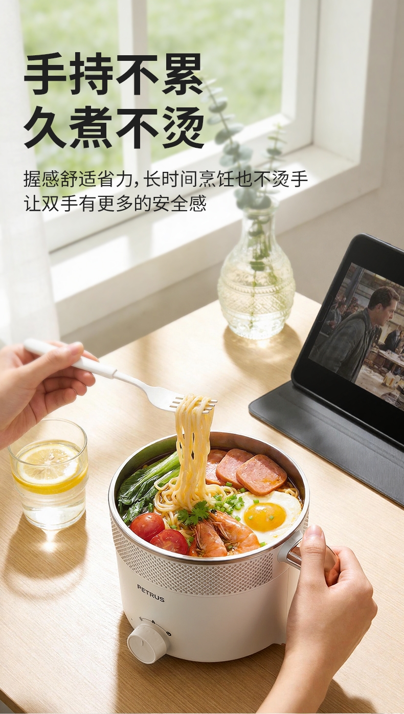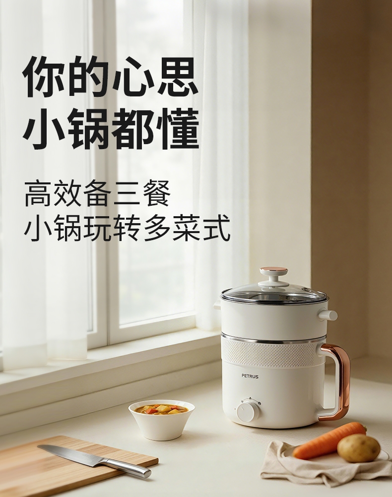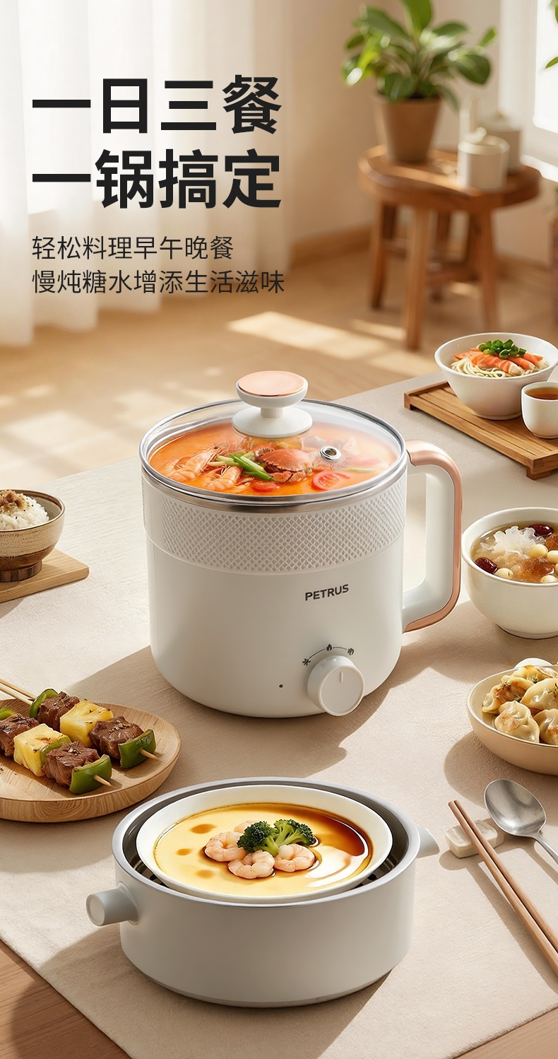 1.5L黄金容量,自带蒸笼;全不锈钢食材接触,安全卫生;双重温控保护,自动断电,安全放心