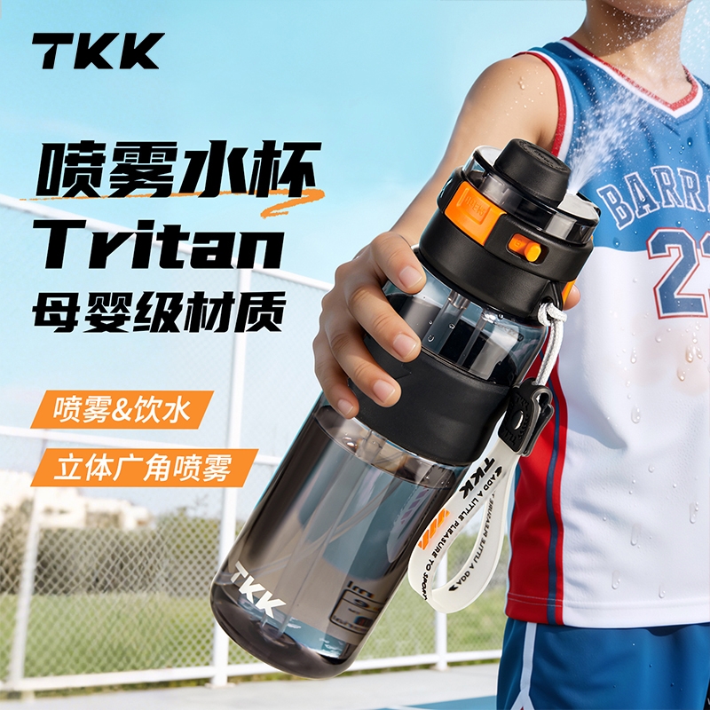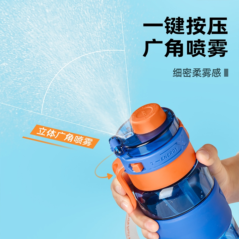 杯身采用美国伊士曼Tritan进口材料;多功能喷雾水杯;按压式一键弹盖,润的饮水口设计,舒适口感,不侧漏不