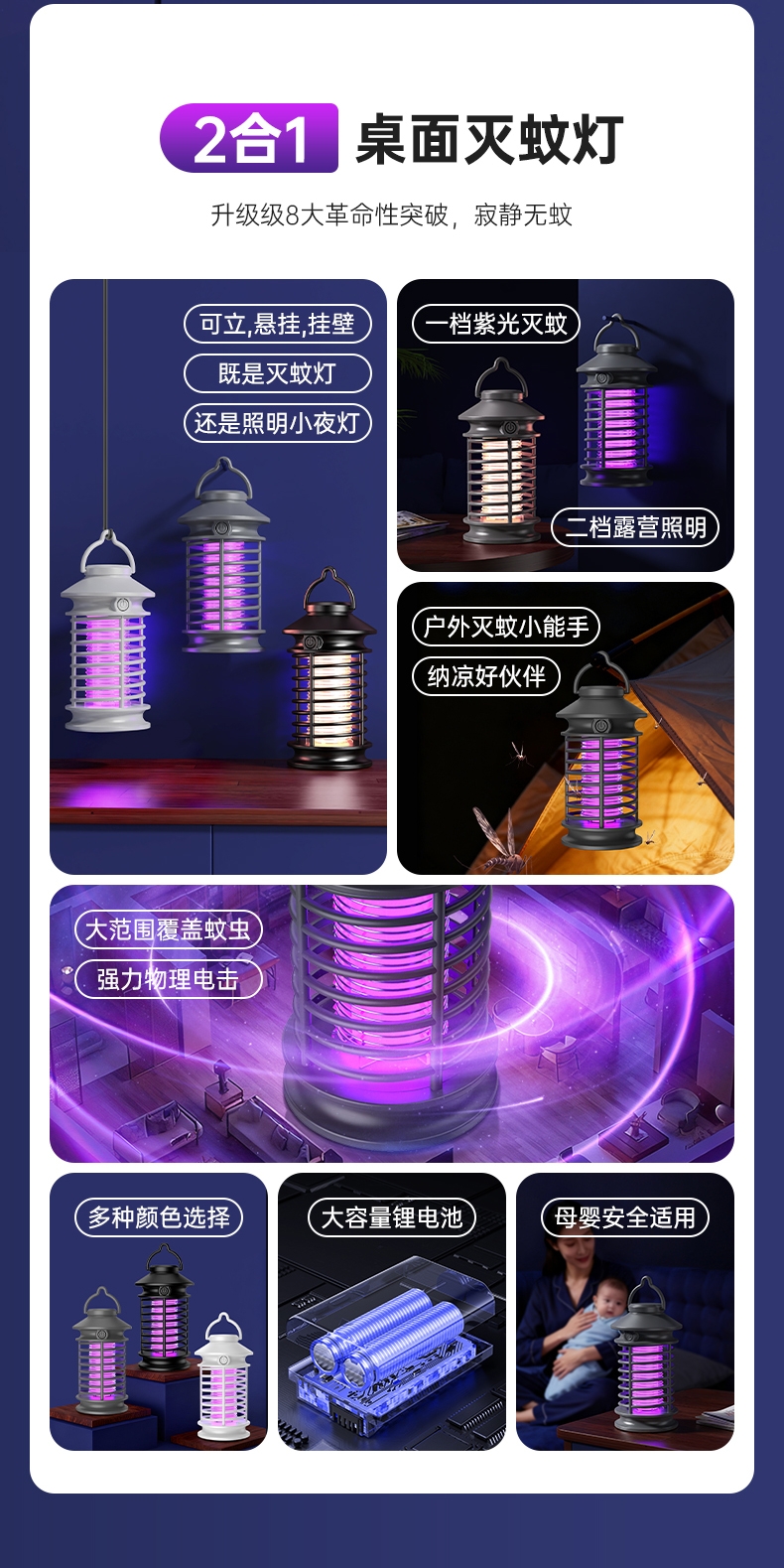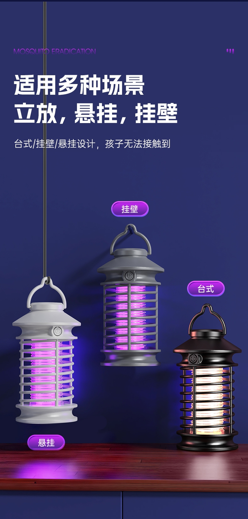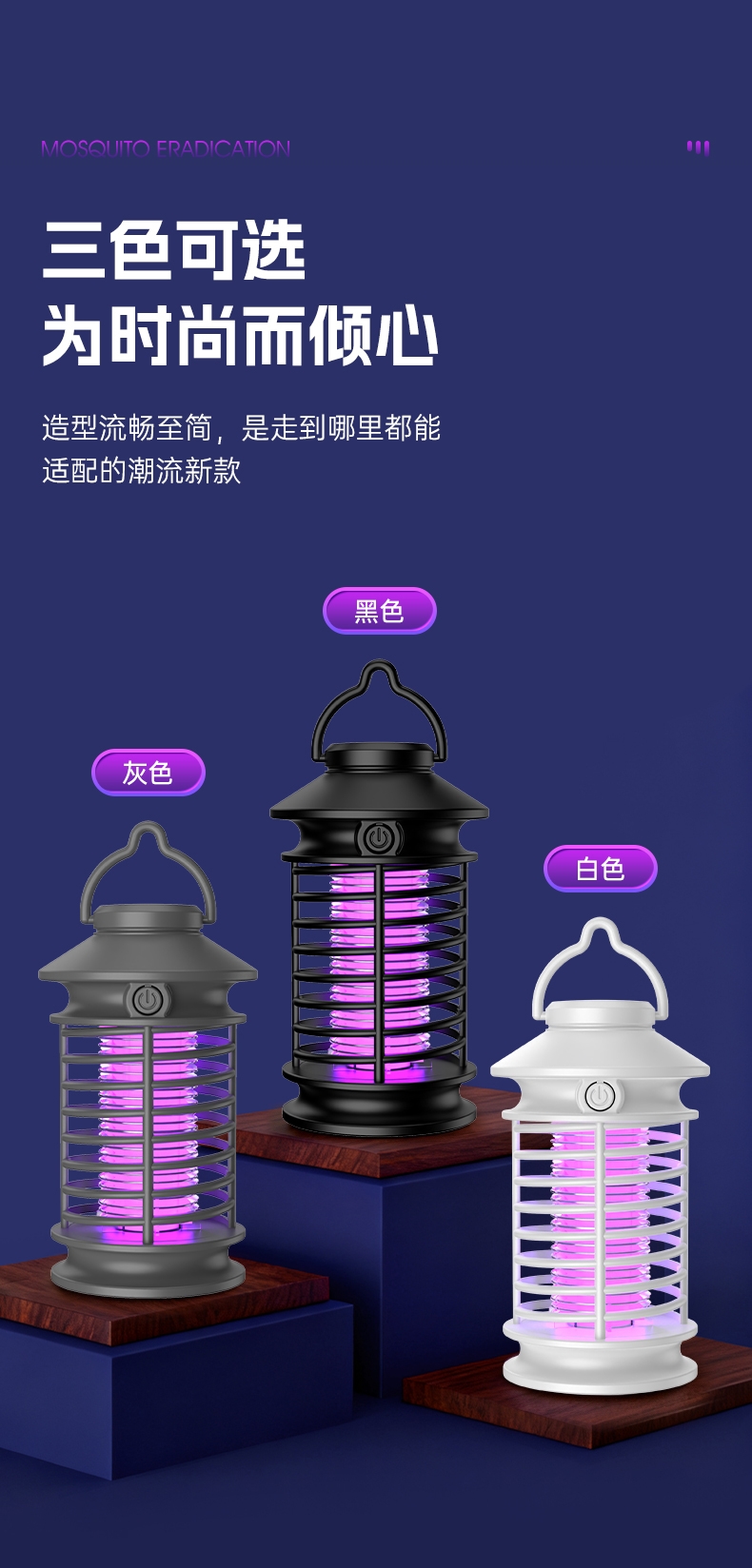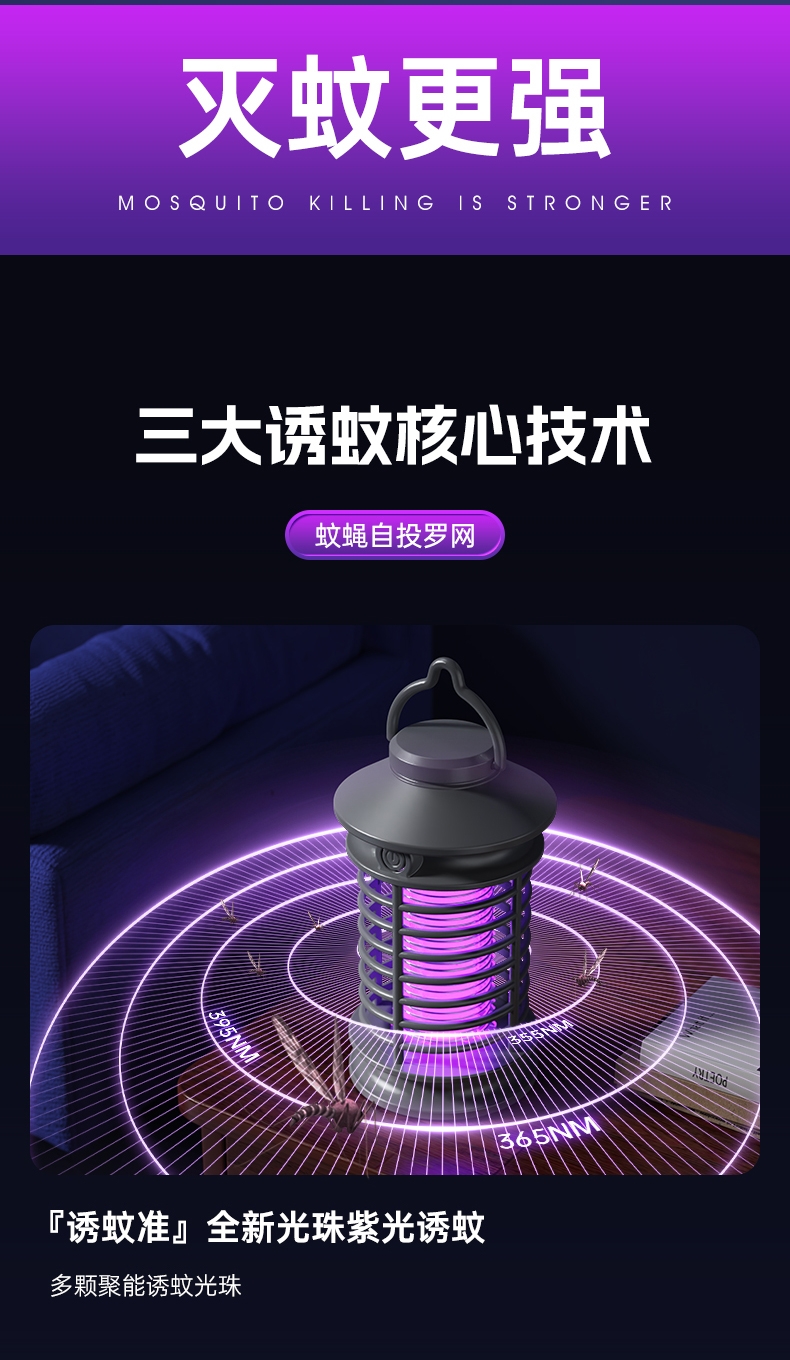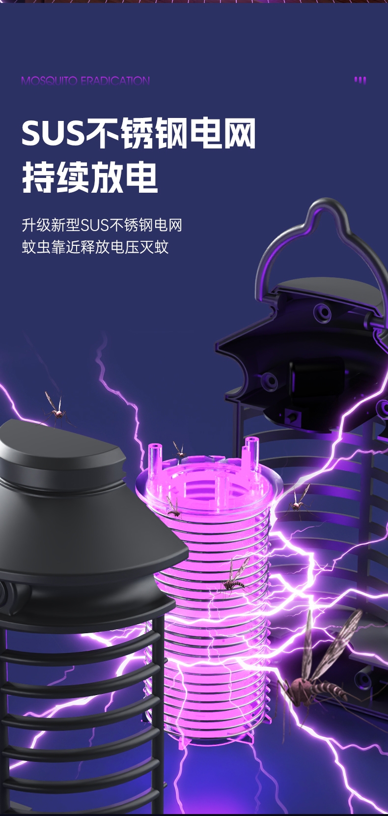 强力电击,击灭蚊虫;SUS不锈钢电网,持续强力电击;三色可选