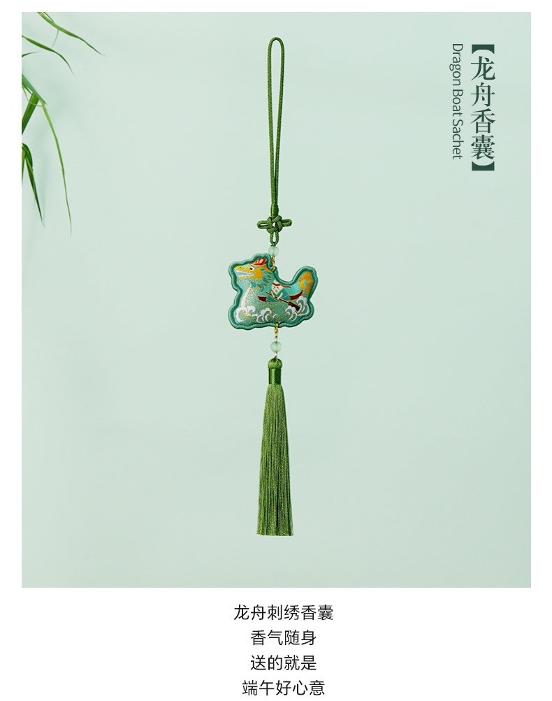 艾草锤配刺绣香囊折扇,盖碗泡大红袍双粽,风雅端午礼;一锤一囊一扇一盖碗,双大红袍加双粽,国风心意满。;艾草锤捶走疲乏,刺绣香囊折扇添韵,盖碗茶双大红袍就