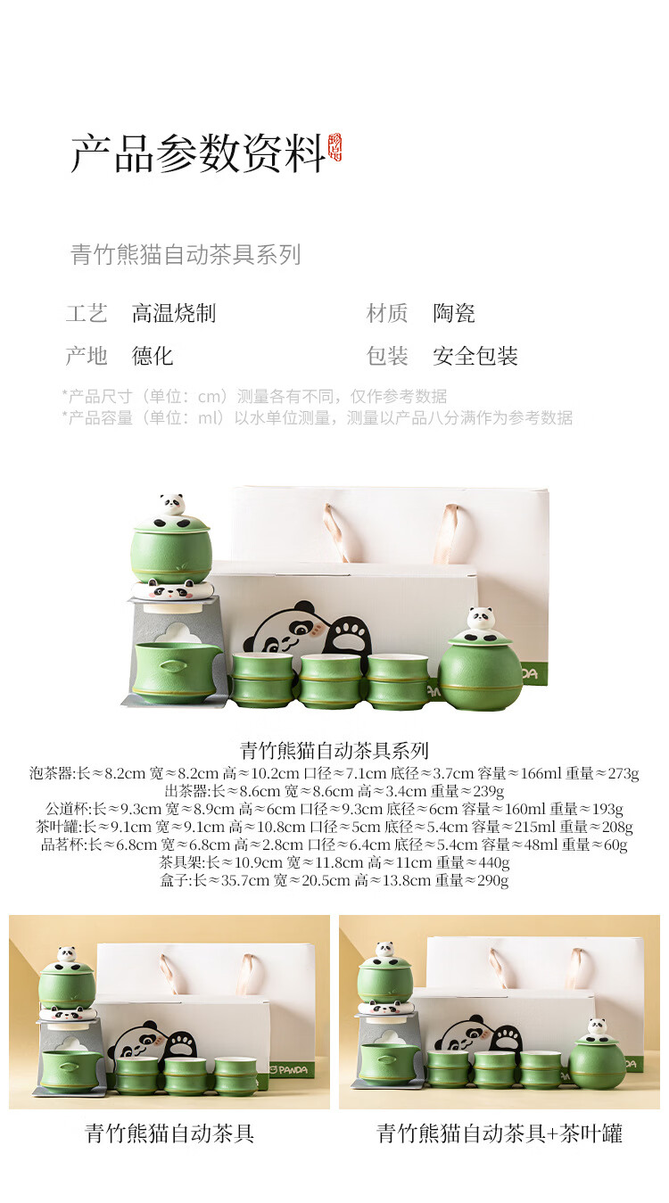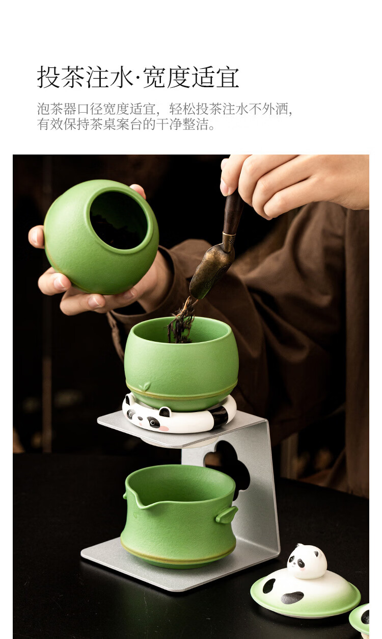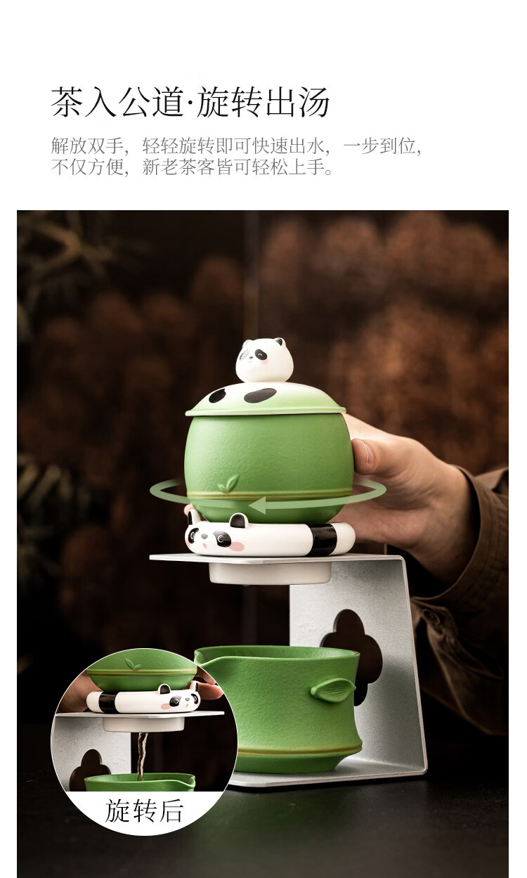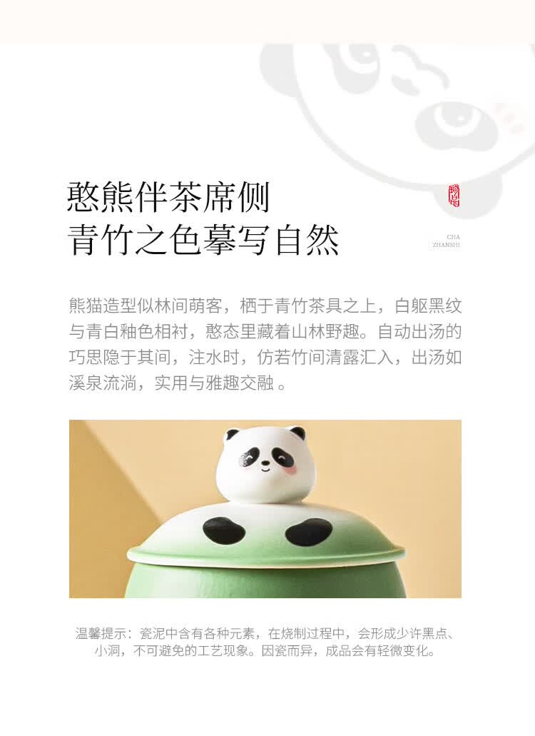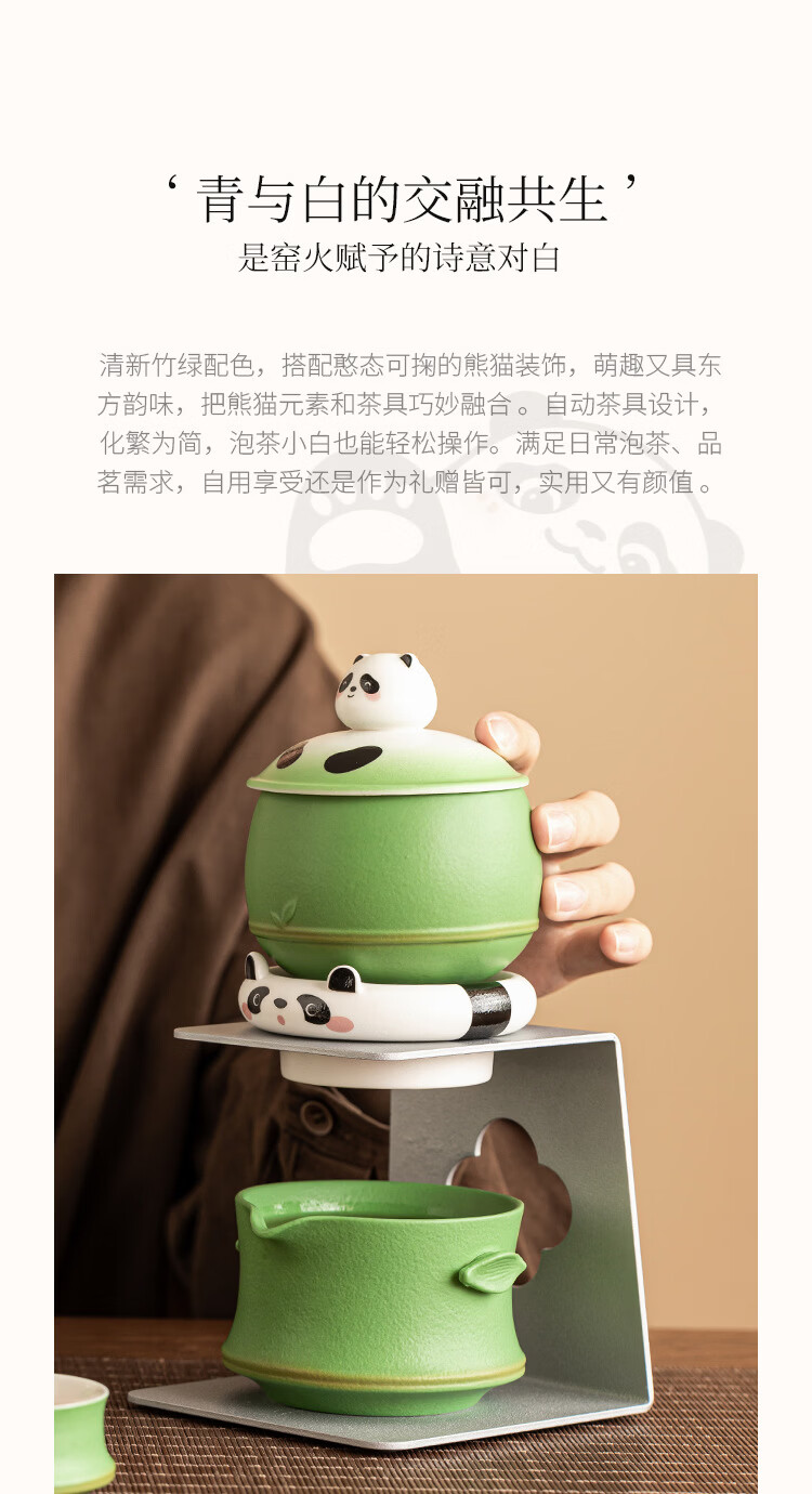 憨态可掬的熊猫装饰,萌趣又具东方韵味;自动茶具设计,化繁为简,泡茶小白也能轻松操作;作为礼赠皆可,实用又有颜值
