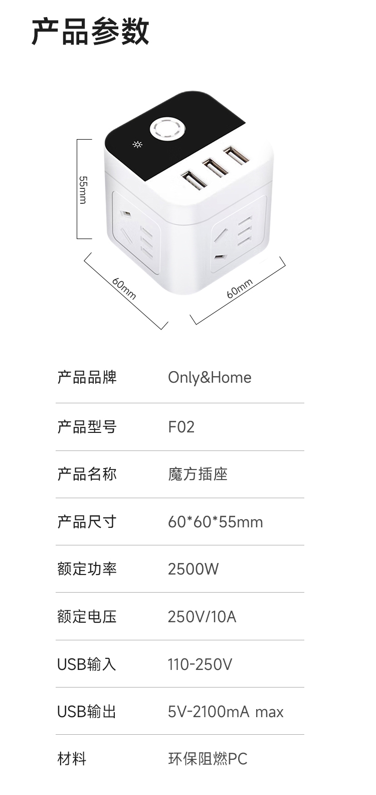 产品尺寸:60*60*55mm