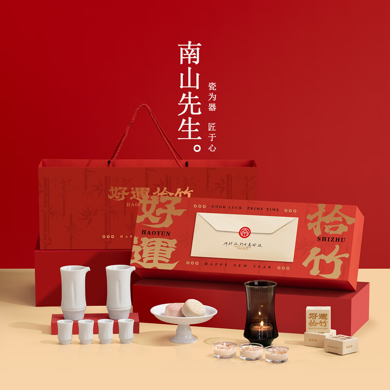 红色国潮风礼盒,搭配同风格手提袋,大气有质感;平安喜乐珊瑚绒毛巾,亲肤轻柔,舒爽全身;夜莺玫瑰护手霜,呵护双手,清香滋润。