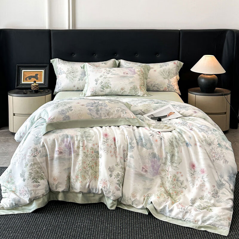 触感是流动的雾,温度是呼吸的季风;莱赛尔面料以无形之柔,拥你入怀,与时光的褶皱共眠。;AB版设计,温润如玉,丝滑亲肤,柔软细腻,触感丝滑