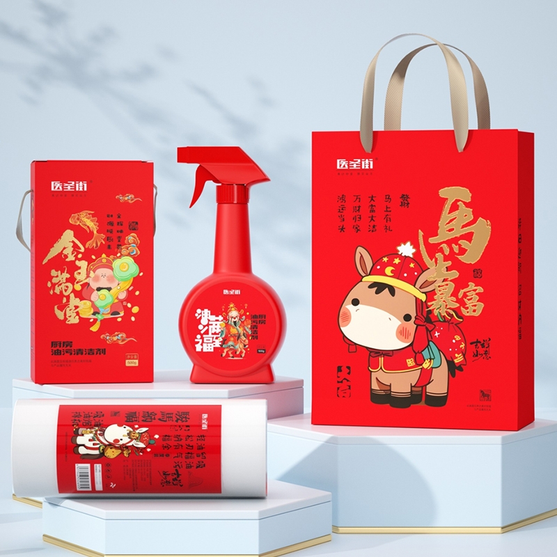 清洁力双效,厨房油污;喜庆包装,承载美好祝福;组合设计,一站式清洁体验