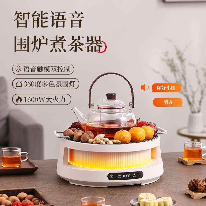 加入PPTAI智能语音触摸双控制;360度多色氛围灯,营造围炉煮茶氛围感;9档火力煮茶功能,可泡/蒸/煮各种茶叶;无明火无烟尘红外聚能加热,室内使用更安全;百搭不挑壶,铁、铜、银、玻璃、陶瓷等多功能围炉煮茶