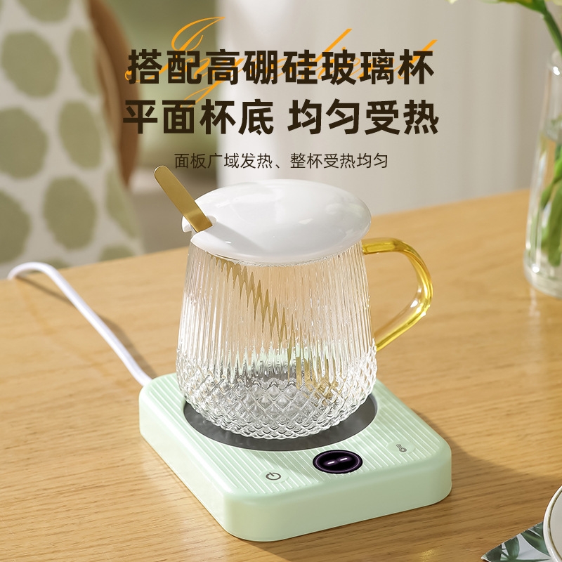 双核PTC无光无噪加热;百搭不挑杯:纸盒、玻璃杯、奶瓶、陶瓷杯/盘、不锈钢;三档调温:55度热牛奶,65度花果茶,75度热咖啡;75度长效恒温,4小时自动断电保护;30W低功率,宿舍办公放心用